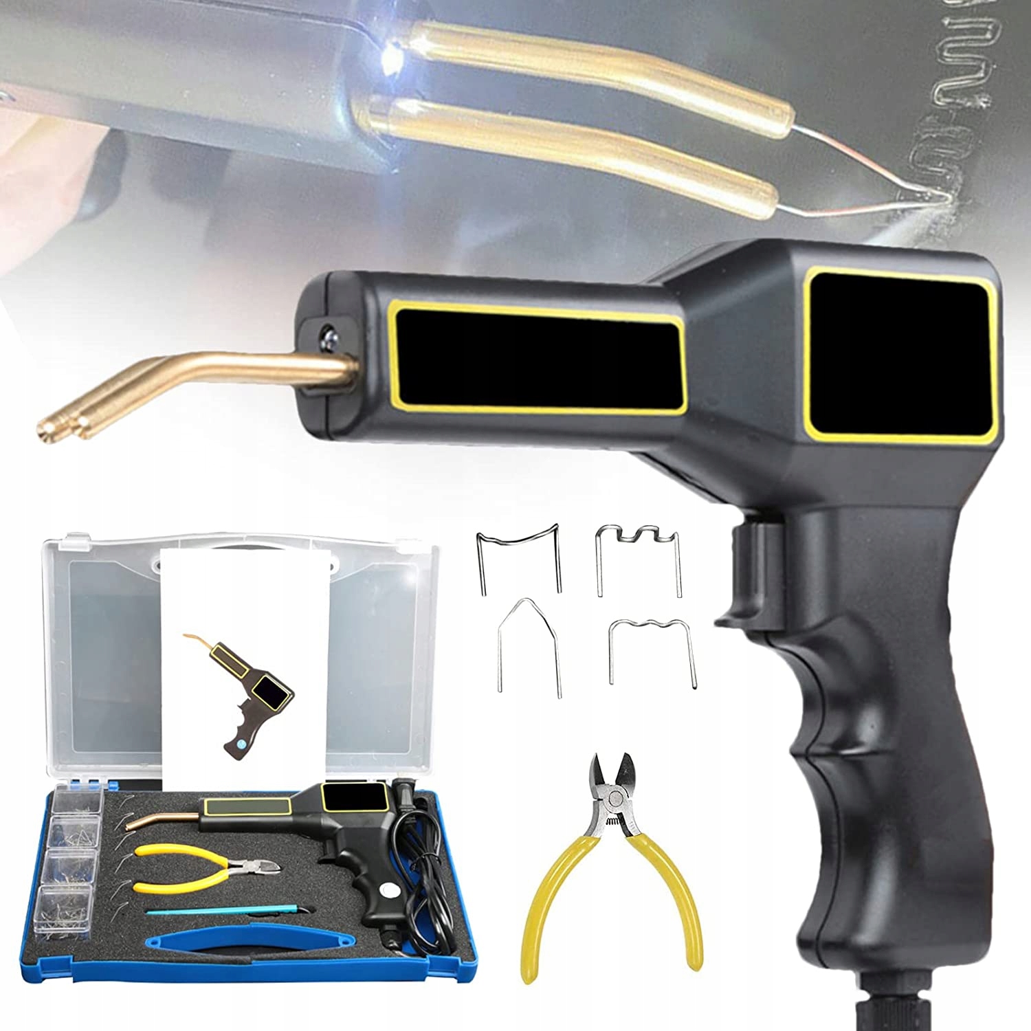 - - многофункциональный и практичный, для ремонта и заполнения трещин, указанных на аксессуарах, в комплект входят V-образные сварочные гвозди, M-образные сварочные гвозди, высоковолновые сварочные гвозди и маловолновые сварочные гвозди для удовлетворения различных потребностей.