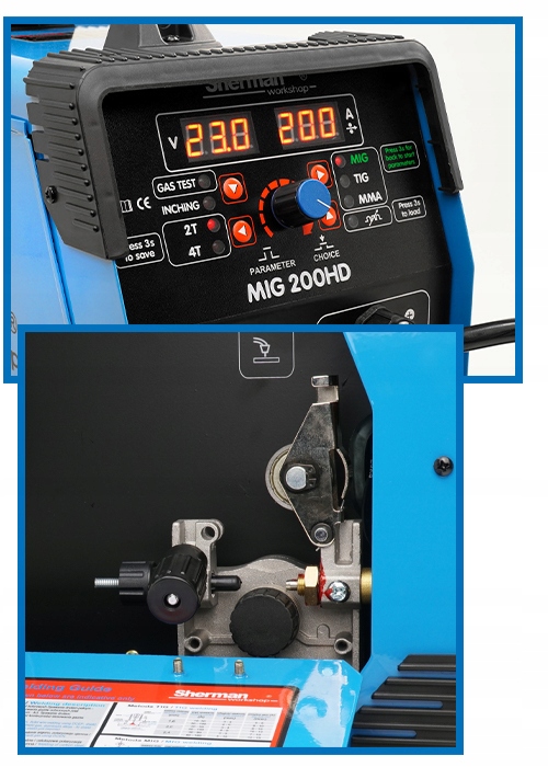 Sherman MIG 200hd - это машина, предназначенная для любителей DIY и не только. Он также успешно работает в автомобильных, слесарных и сервисных мастерских. Он также используется при изготовлении различных сварных конструкций.