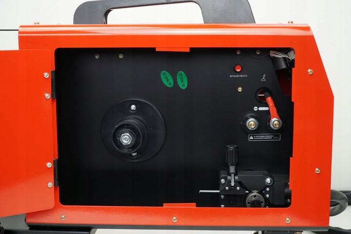 рядом с устройством подачи проволоки находятся гнезда для изменения полярности держателей, которые необходимо заменить при сварке без газового покрытия (FLUX).