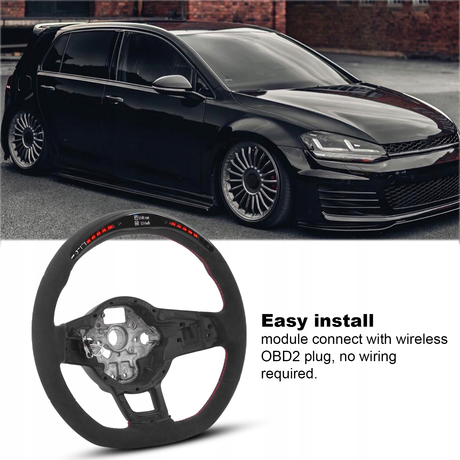5. Замена Mk7/Mk7.5 GTD/R 2013-2020, простая установка, просто подключите модуль к беспроводному разъему OBD2 без проводки и замените обивку, жгут проводов и механизм переключения передач от существующий руль на новый руль.