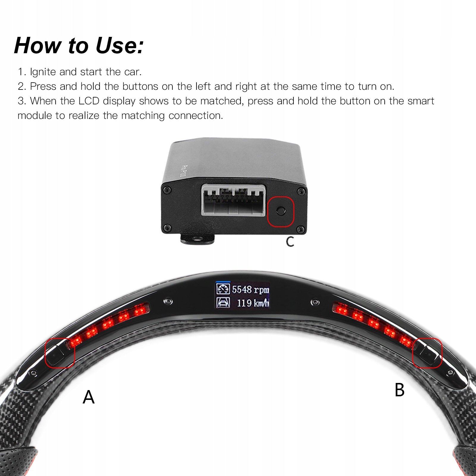 1 х светодиодный руль 1 х интеллектуальный модуль Obd2 1 х жгут проводов Obd2 1 х Руководство пользователя