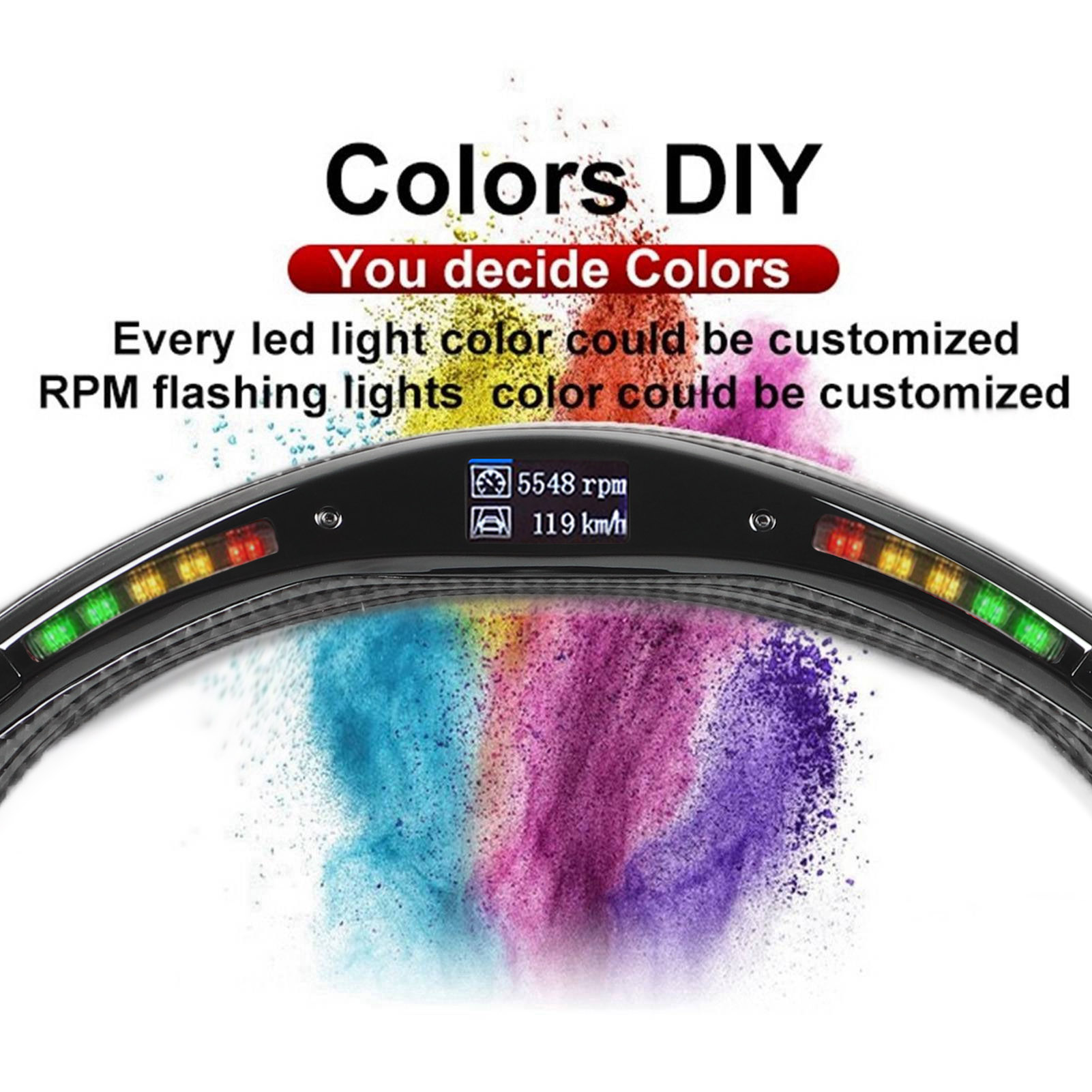 2023 года. Перед заказом проверьте модель и год выпуска. 2. Светодиодный индикатор переключения передач: постепенно становится зеленым и мигает красным в качестве напоминания. Регулируется от 500 до 9900 об/мин с возможностью настройки цветов RGB. 3. Отображение данных в реальном времени: отображает индикатор переключения передач, время прохождения круга, значения ускорения и данные о динамике. Контролируйте скорость, обороты в минуту, нагрузку двигателя, температуру воды, напряжение и многое другое. 4. Конструкция из углеродного волокна: глянцевое углеродное волокно 3K с эпоксидным покрытием толщиной 1 мм для дополнительной защиты. Симметричный дизайн с высокой термостойкостью и гладкой поверхностью. 5. Инновационный дизайн с плоским дном: увеличивает пространство для ног и обеспечивает отличное сцепление при любой температуре, вдохновленный гоночным дизайном для дополнительного стиля и азарта.