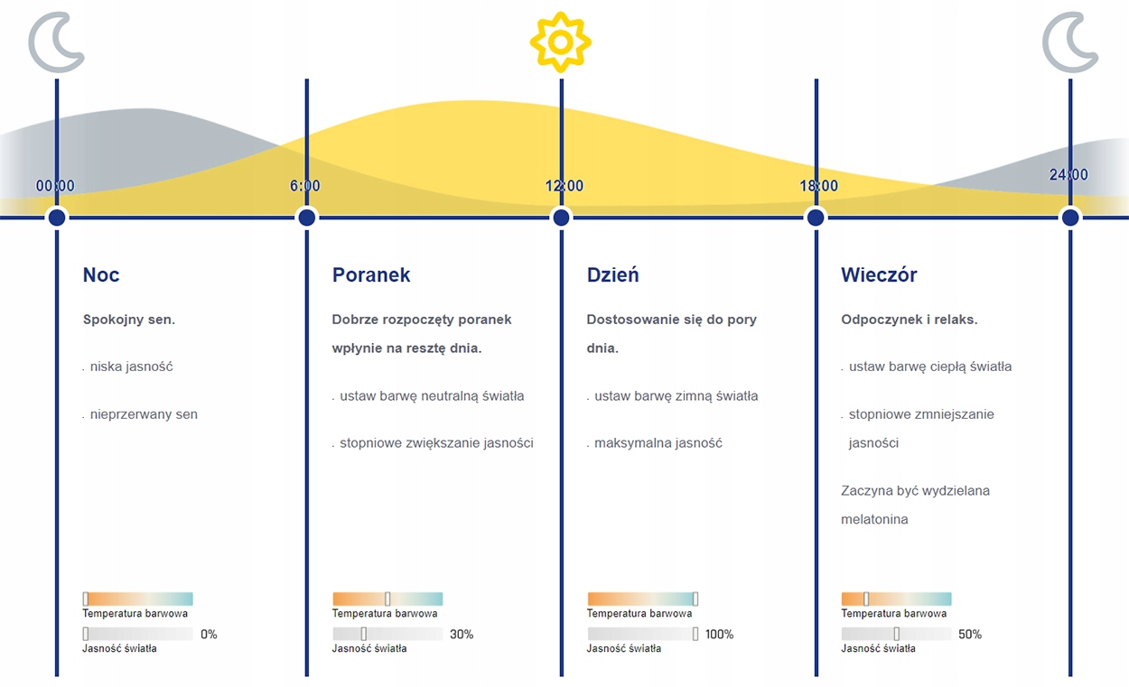 - функция биоритм жизни - свет адаптируется к вашему ежедневному ритму дня.