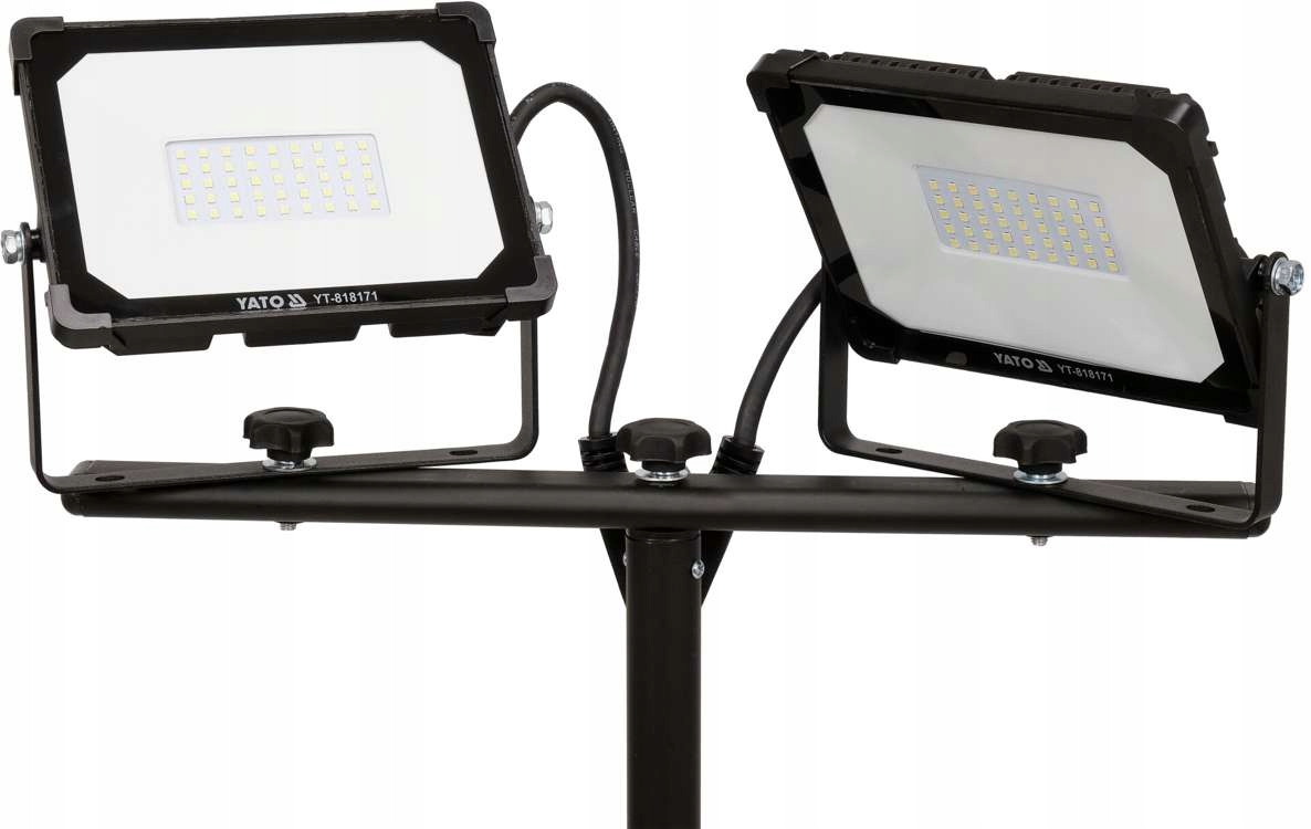 два плоских прожектора с мощными светодиодами SMD, размещенными на стабильной регулируемой подставке. Класс герметичности IP65 позволяет использовать освещение в наружных условиях.