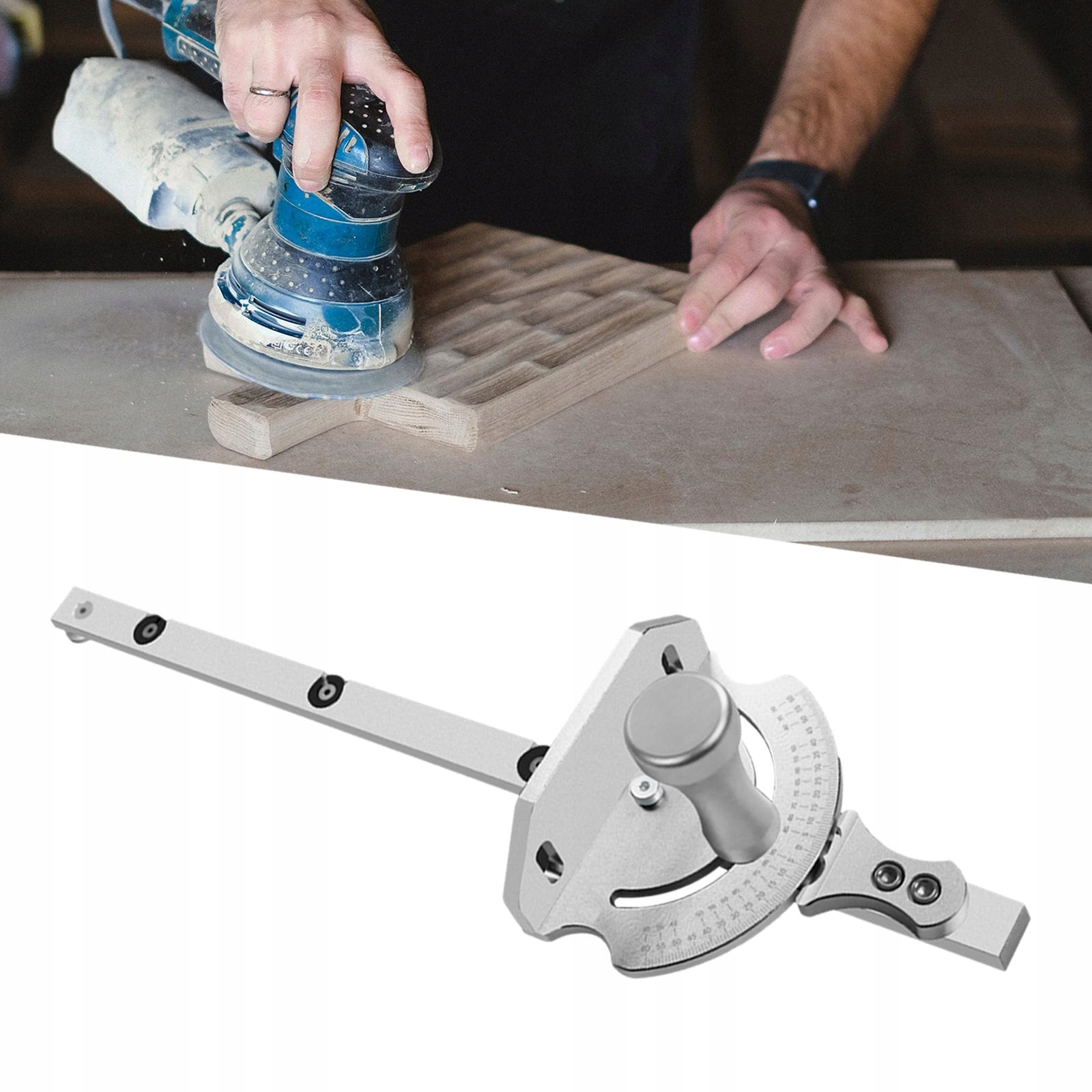 [профессиональный деревообрабатывающий инструмент]: прибор для измерения угла для настольной пилы монтируется в торцовочные канавки настольной пилы и направляет диагональный датчик параллельно лезвию, обеспечивая высокую точность угловых и поперечных разрезов.