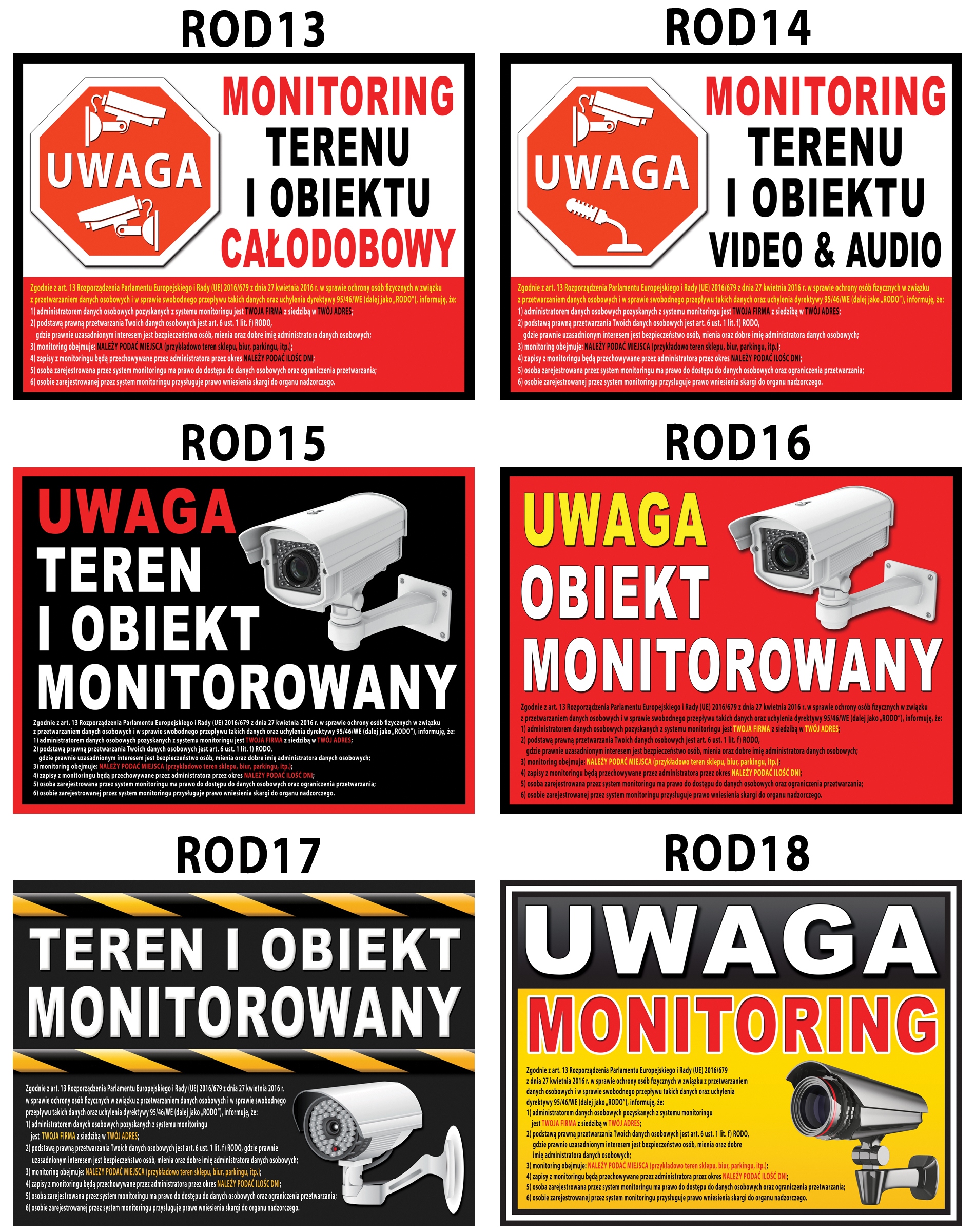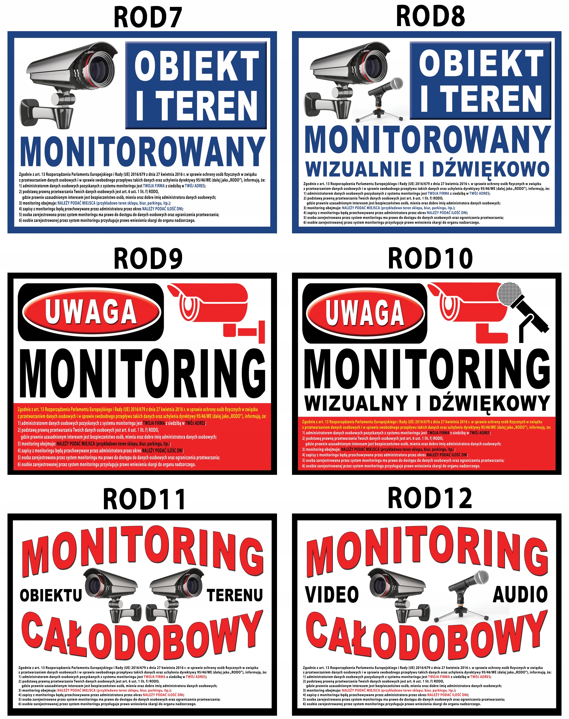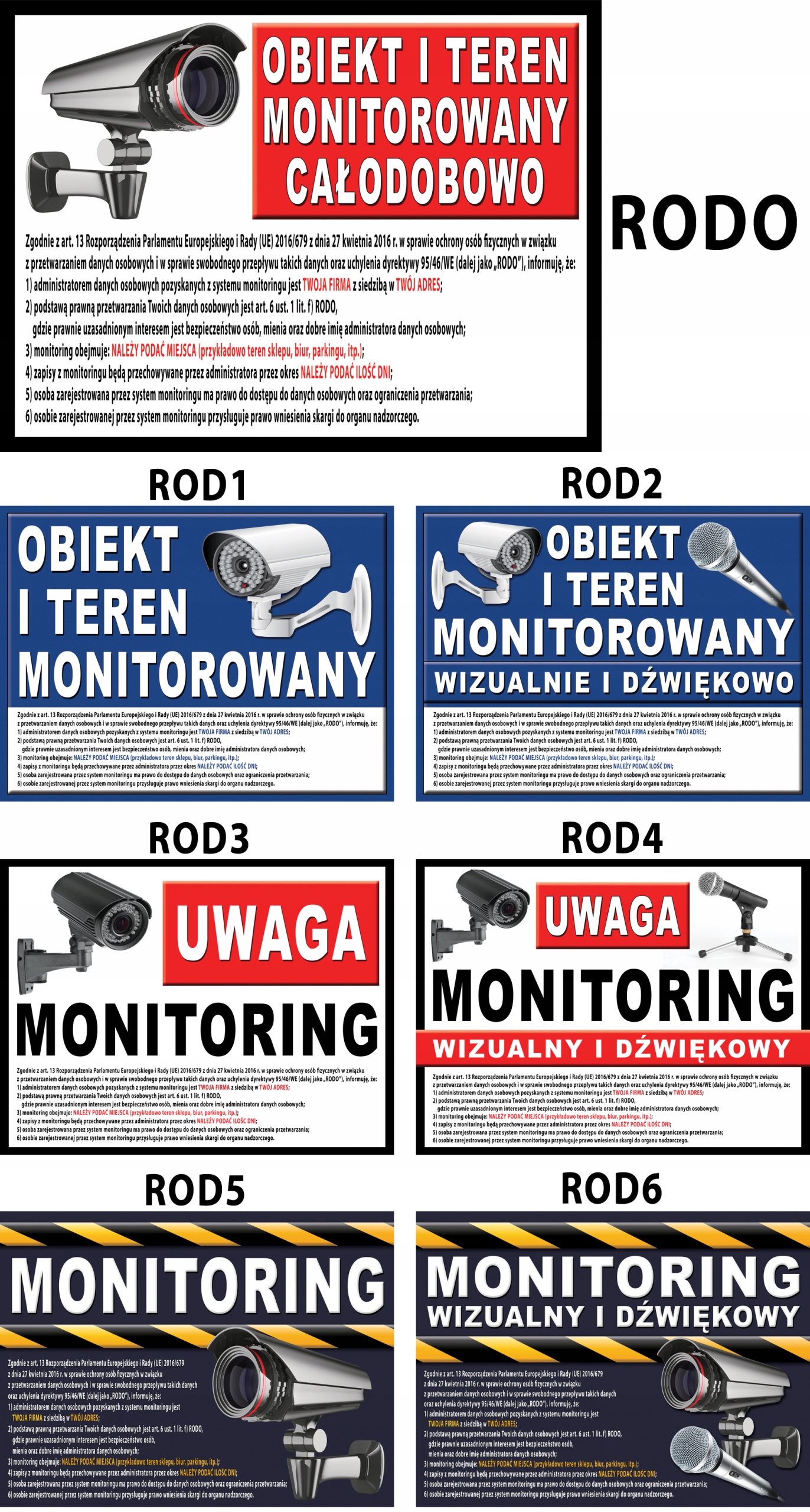 Готовые образцы табличек МОНИТОРИНГ по новой директивы RODO (добавлены обязательные записи)размером 40x30 см, напечатаны на белом DIBONDZIE 2мм (это материал для гораздо болеепрочный механическим и атмосферным воздействиям, чем ПВХ).