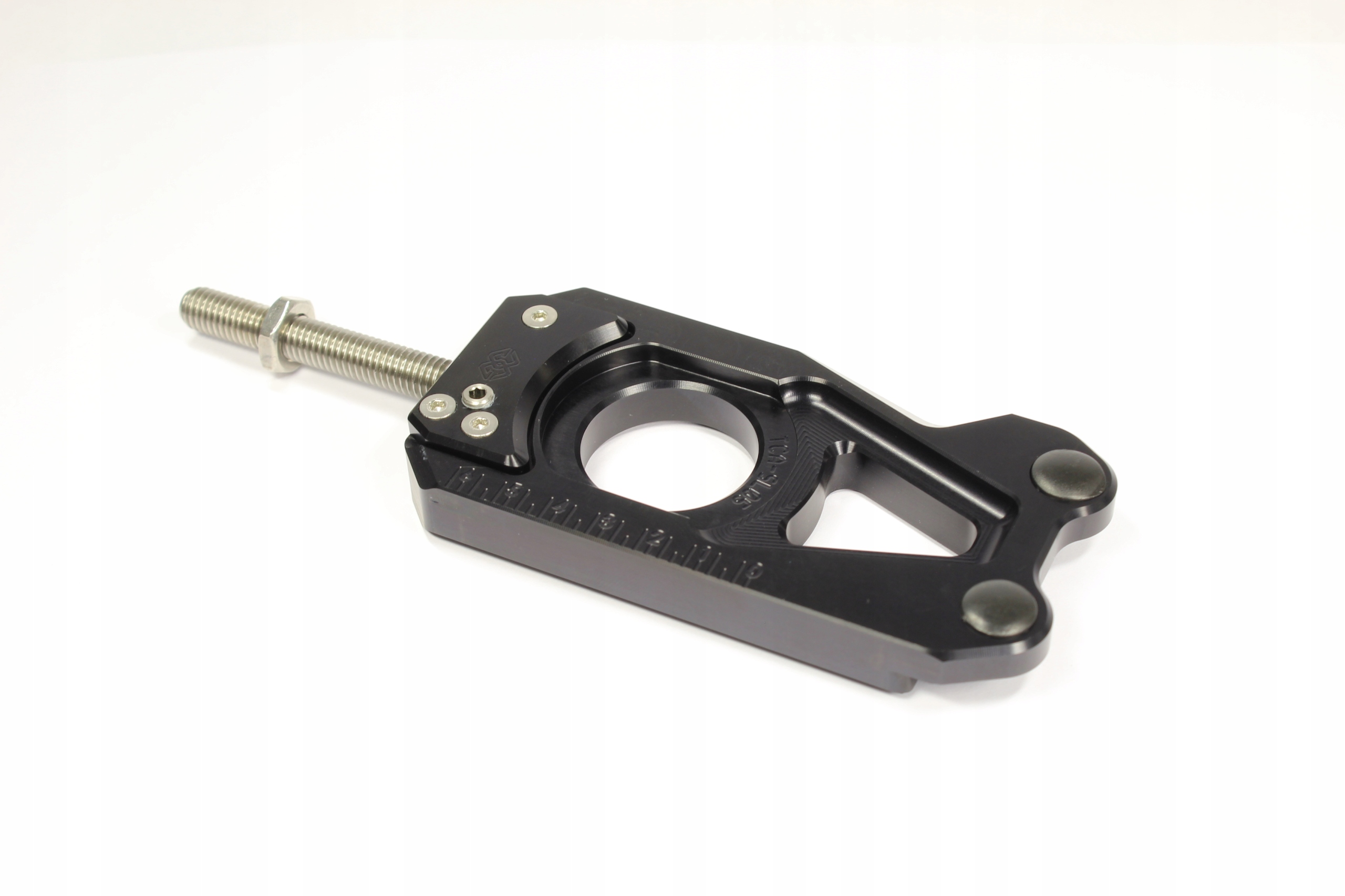 уникальный, инновационный натяжитель цепи .точная регулировка натяжения цепи с помощью конической передачи.высокая точность считывания благодаря градуировке с нониусом; используя масштабирование, вы можете компенсировать допуски серии.положение заднего колеса можно прочитать в „мм".установка заднего колеса проще.поддержка оси против растягивающих и сжимающих сил .легкий дизайн .дополнительные подъемники и винты стойки для облегчения подъема автомобиля.дополнительные краш колодки для защиты от повреждения оси и коромысла.