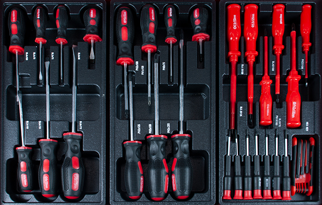 - 4шт плоских отверток: SL3x75/SL4x100/SL5,5X125/SL6,5x150