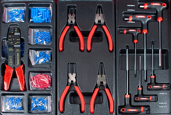 - -обжимные плоскогубцы для изолированных кабельных наконечников вместе с набором наконечников
