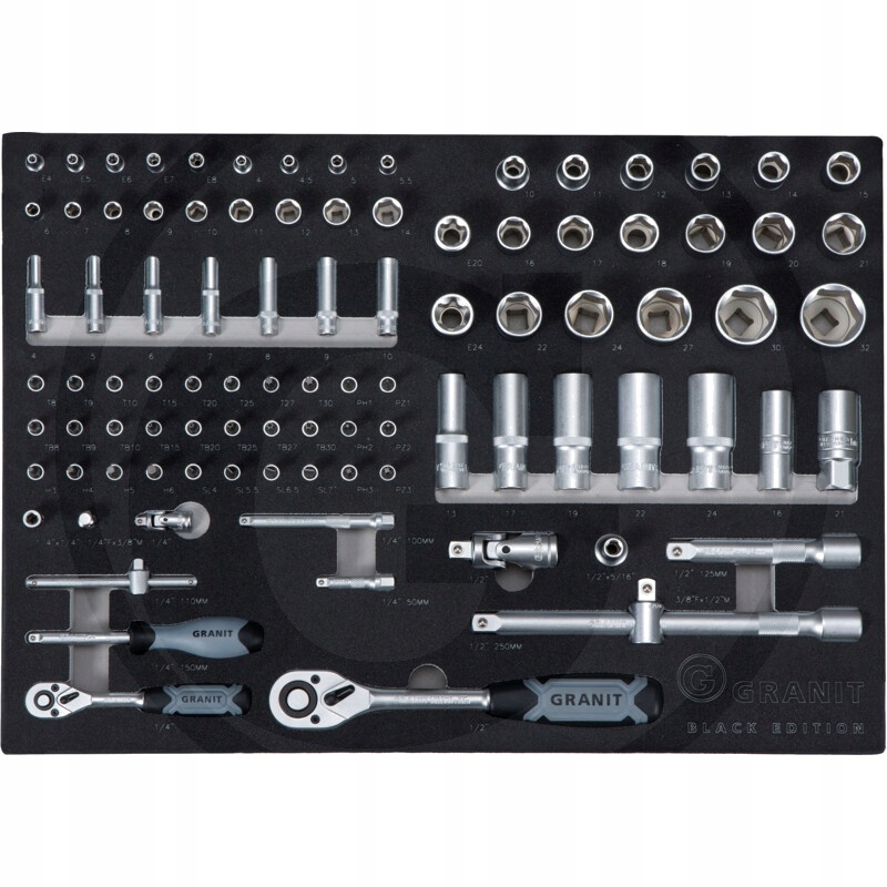 • 7303000: вставка 1/1 - набор ключей торцевых 1/2″ + 1/4″ 95 шт.