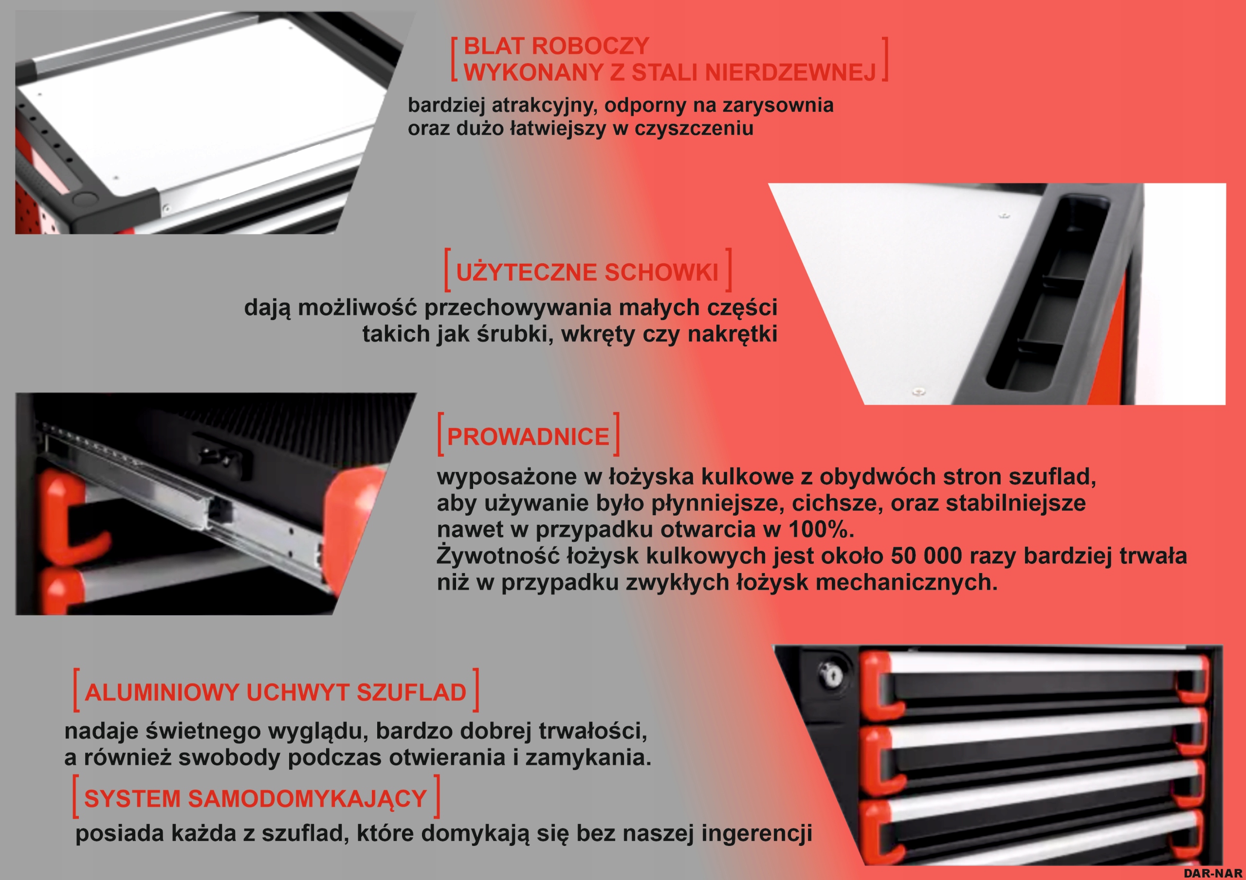 - столешница из нержавеющей стали, с отделениями для мелких инструментов.