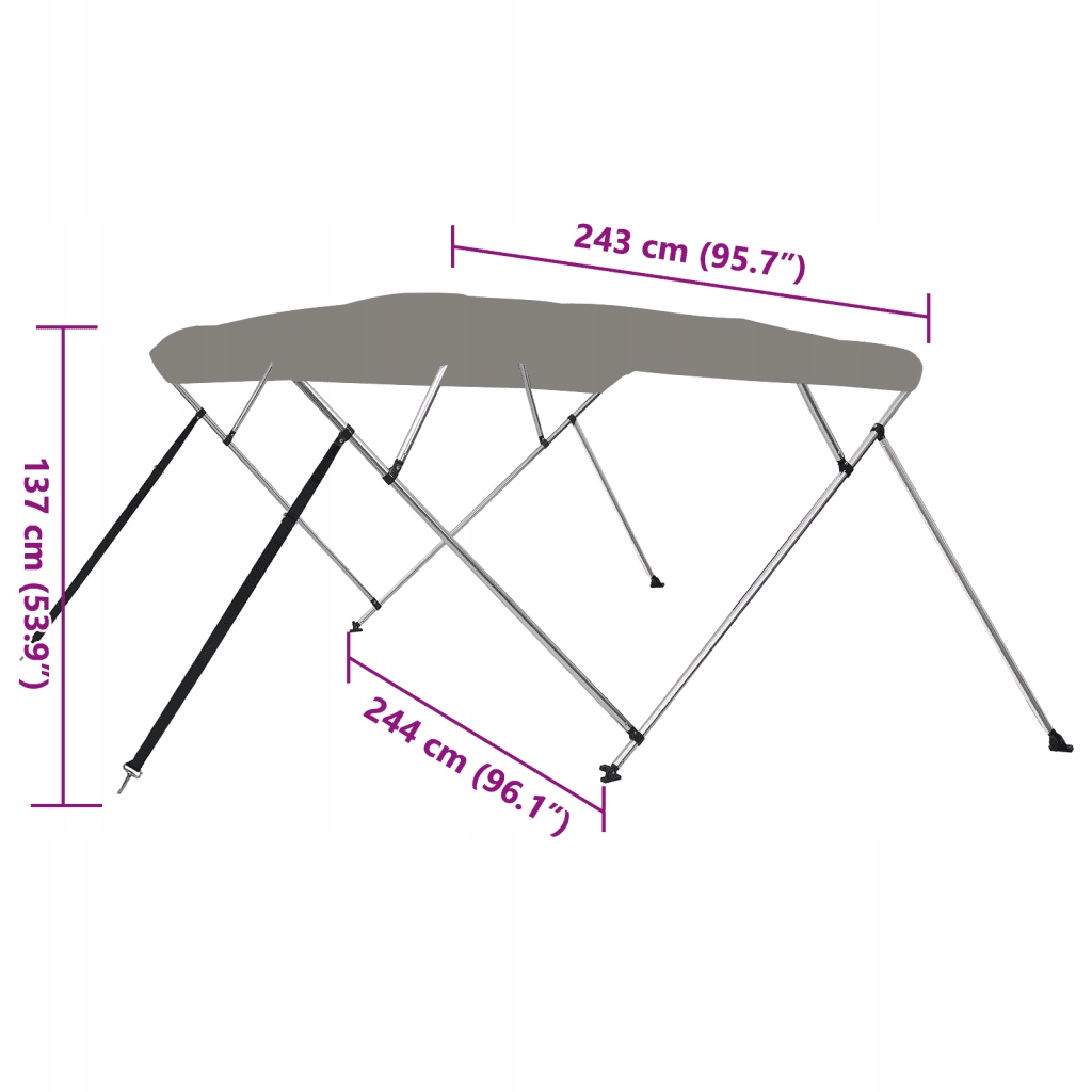 Тент-бимини с 4 полосами, серый 243х250х131см, полиэстер/алюминий