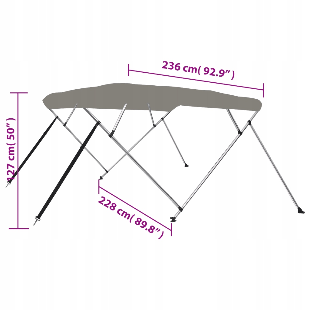 Тент-бимини с 4 перекладинами, серый, 236x228x127см