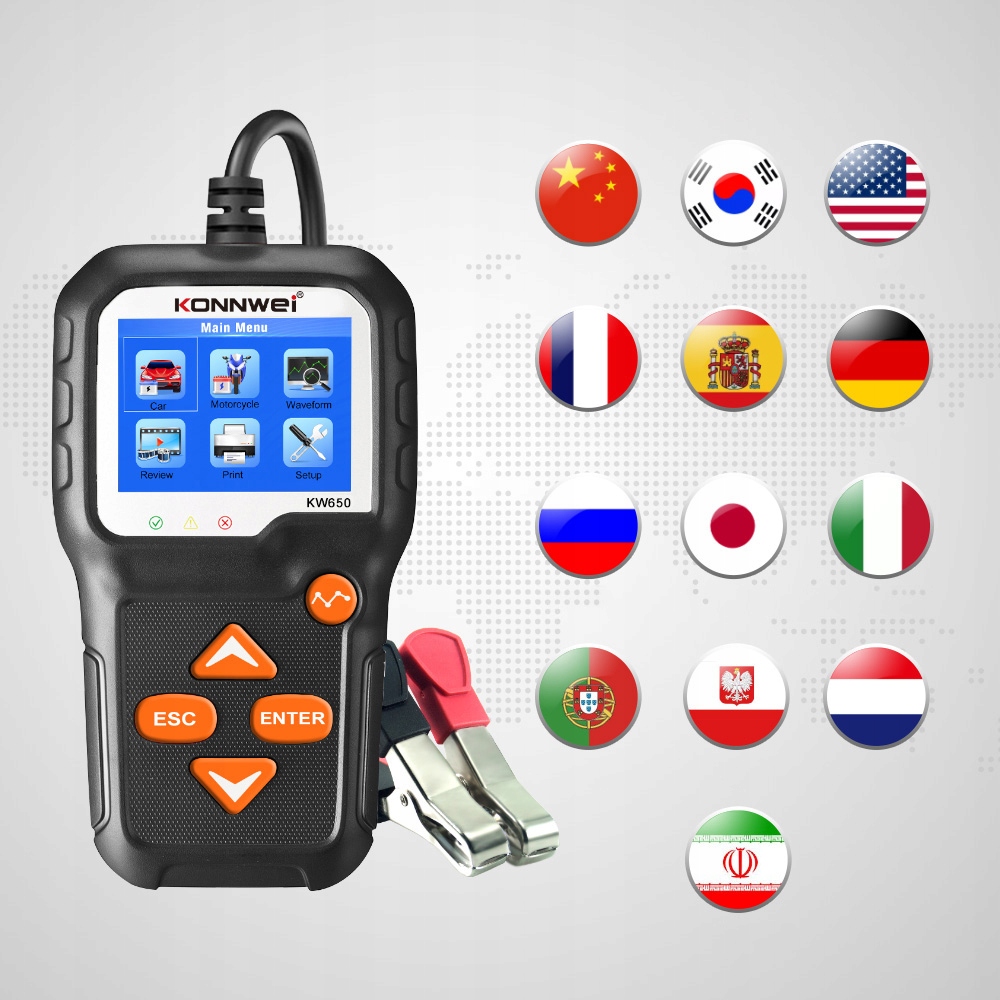 KONNWEI KW650-это тестер батареи, который может быстро и точно проверить состояние батареи, а также проверить рабочее состояние генератора. Поддержка 6V и 12V профессиональный инструмент диагностики транспортного средства, пожалуйста, используйте графический инструмент поддержки, чтобы проверить, влияет ли ваша система на проблемы, линию защиты функций, цветной экран и идеальный дизайн шаблона, пожизненное бесплатное обновление услуг, KONNWEI KW650-идеальный тест оценки для работы и домашних инструментов.п>