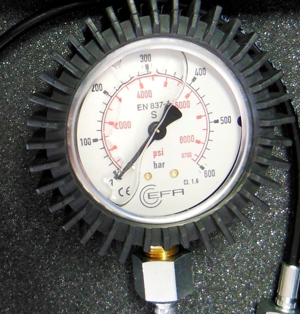 - Глицериновый манометр 0–600 бар со шлангом M12 x 1,5