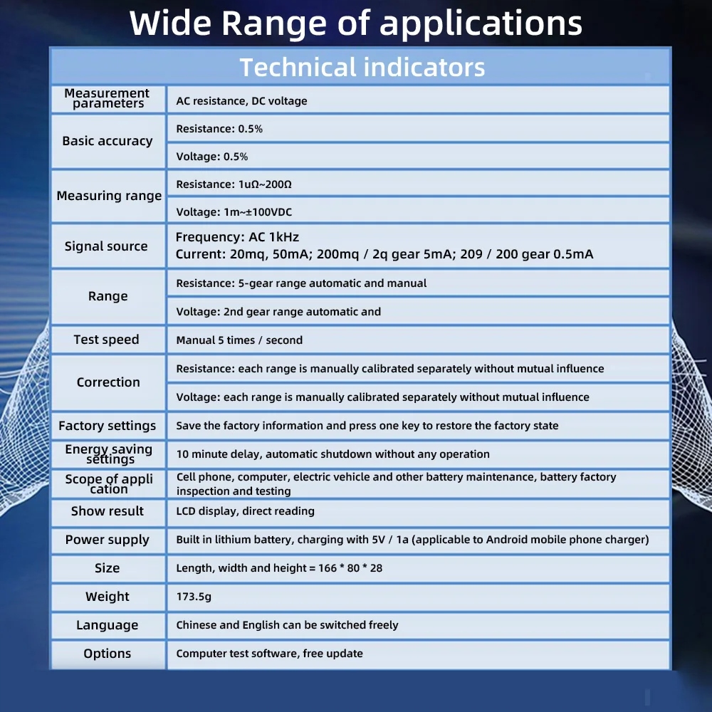 Basic accuracy: resistance 0.5%, voltage 0.5%