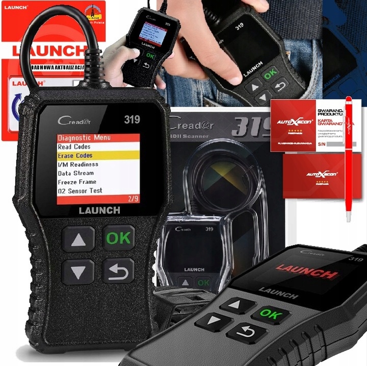 ЗАПУСК ДИАГНОСТИЧЕСКОГО ТЕСТЕРА OBDII CR319. Тестер представляет собой автономное устройство, оснащенное цветным дисплеем и быстрым ARM-процессором. Он питается непосредственно от диагностического разъема автомобиля и имеет полное меню POLISH .