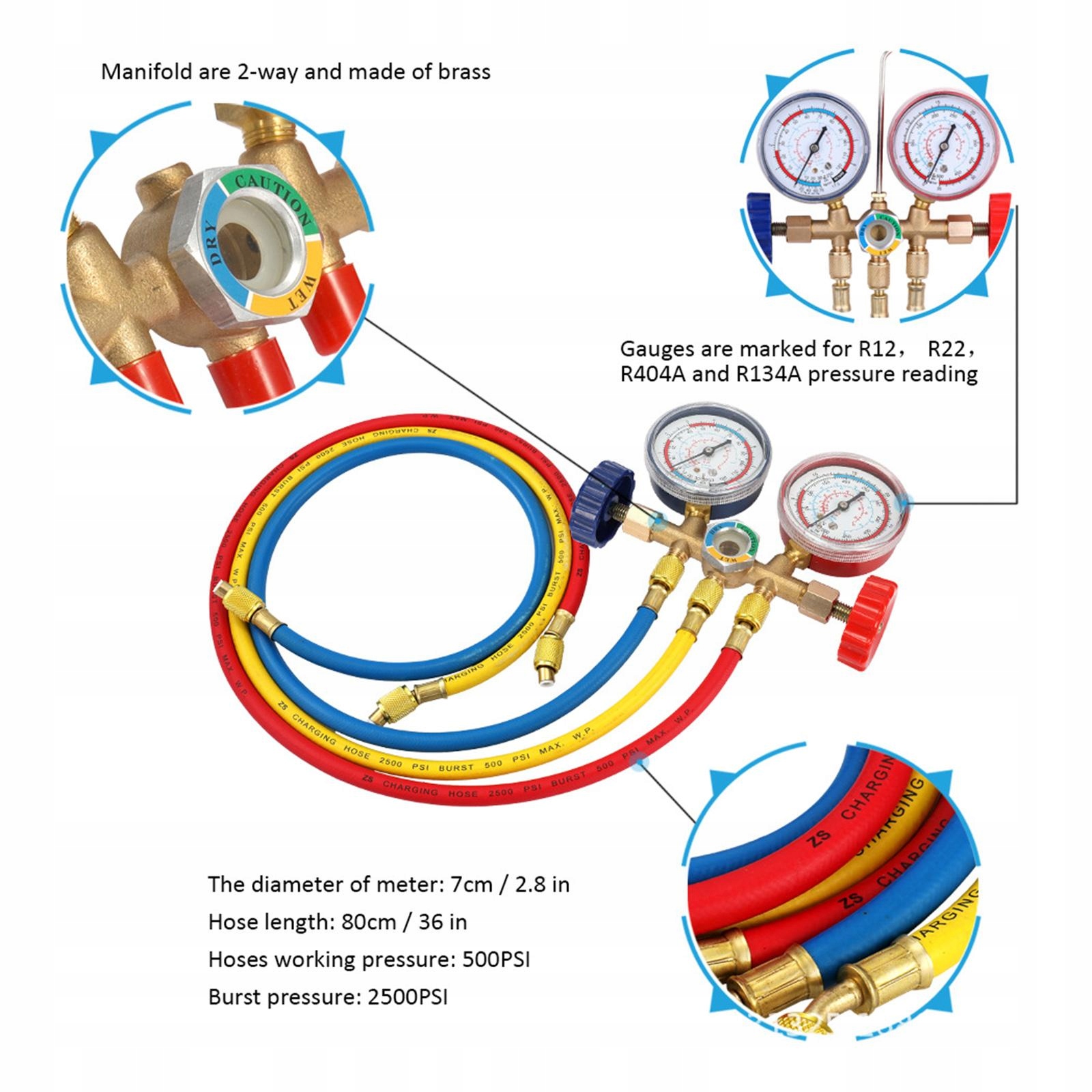 манометр коллектора хладагента R22 R404a для холодильных адаптеров R134a