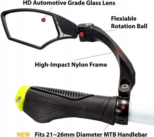 зеркало изготовлено из супер прозрачной автомобильной стеклянной линзы и имеет функцию защиты от диафрагмы. По сравнению с большинством велосипедных зеркал на рынке, это зеркало не изготовлено из дешевого и экологически чистого акрилового пластика. Он очень прозрачный, а также имеет слегка выпуклую поверхность, поэтому вы можете лучше видеть, что позади вас!