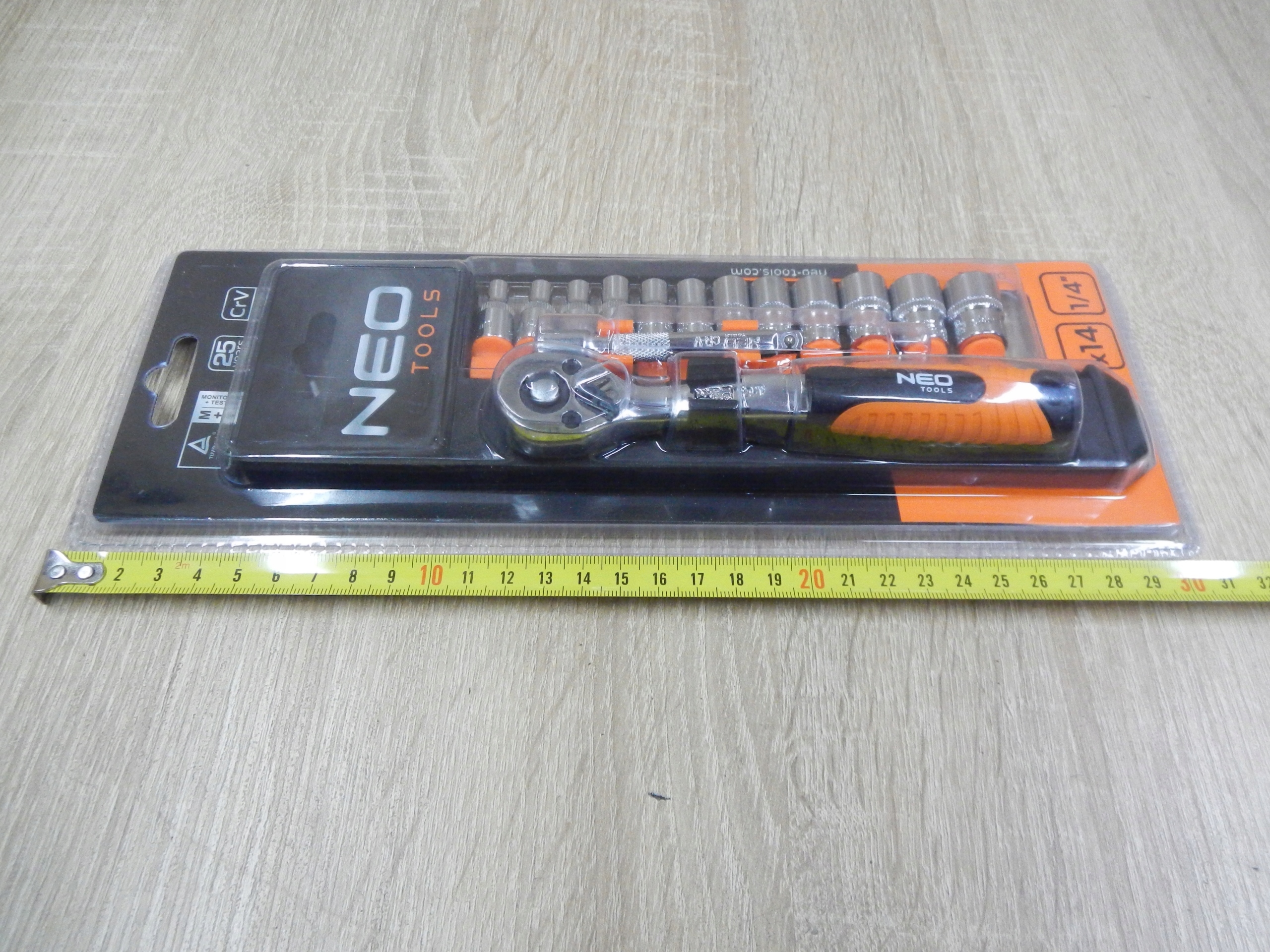 набор торцевых ключей 1/4 " NEO " состоит из 14 элементов, изготовленных из высококачественной хромованадиевой стали. В комплект входят храповик, оснащенный точным храповым механизмом (72 зуба). В комплект входит богатый набор насадок (в размерах от 4 до 13 мм). В дополнение к удобному удлинителю 75 мм. Инструменты поставляются с практичной вешалкой. Качество инструмента подтверждено сертификатом T & amp;#220;V и 25-летней гарантией производителя. Бренд NEO оправдывает ожидания профессионалов.п>