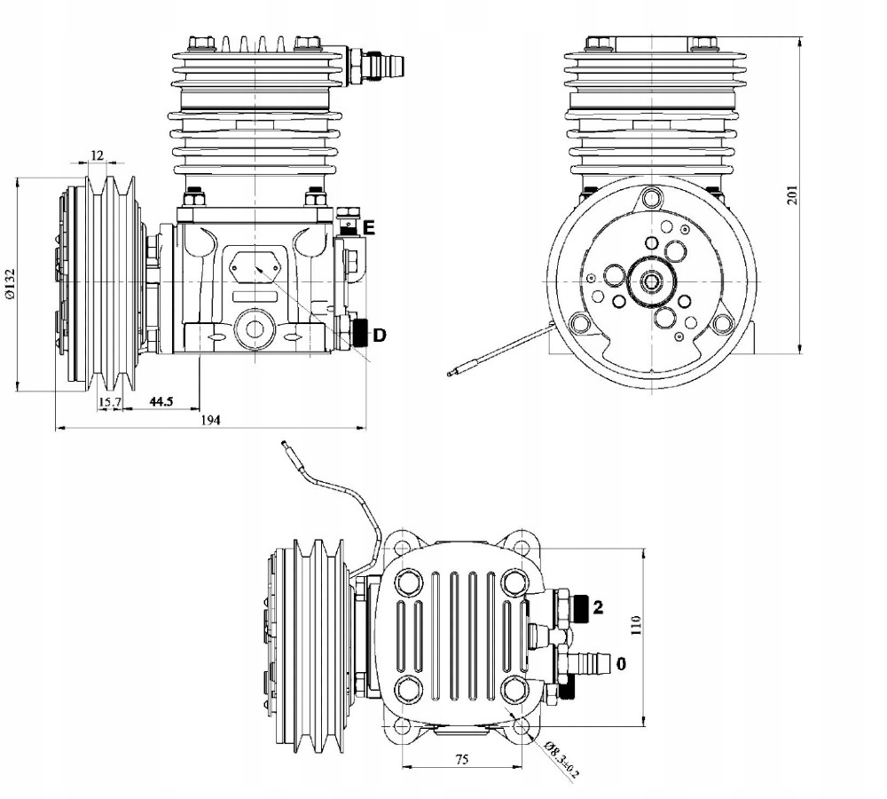 привід компресора здійснюється шківом з електромагнітною муфтою. Мастило від масляної системи двигуна машини.е>