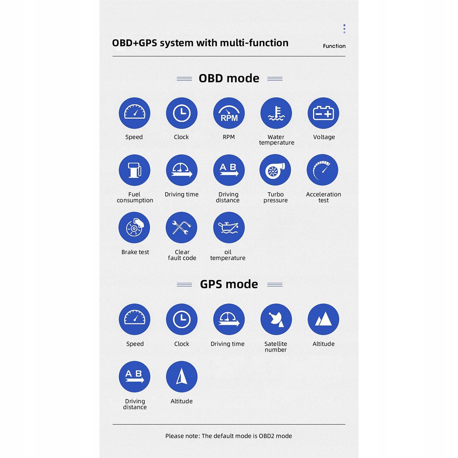 Багатий вміст: швидкість руху, номер, час руху, відстань руху, напрямок руху, годинник, висота над рівнем моря, напруга батареї, перевірка прискорення, перевірка гальм, сигналізація про перевищення швидкості тощо.