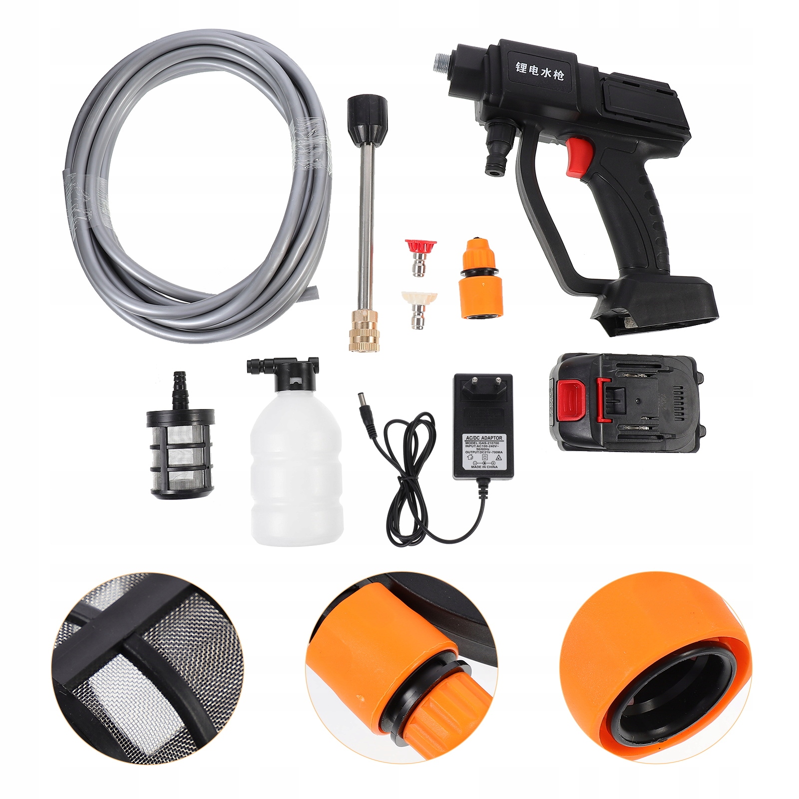 виготовлений з високоякісного матеріалу, міцний і довговічний досить довго використовується. Він широко використовується на додаток до того, щоб бути САДІВНИЦТВО полив інструмент, він також може бути використаний для миття автомобіля. Це дуже практичний високого тиску води обприскувач, який буде служити добре.