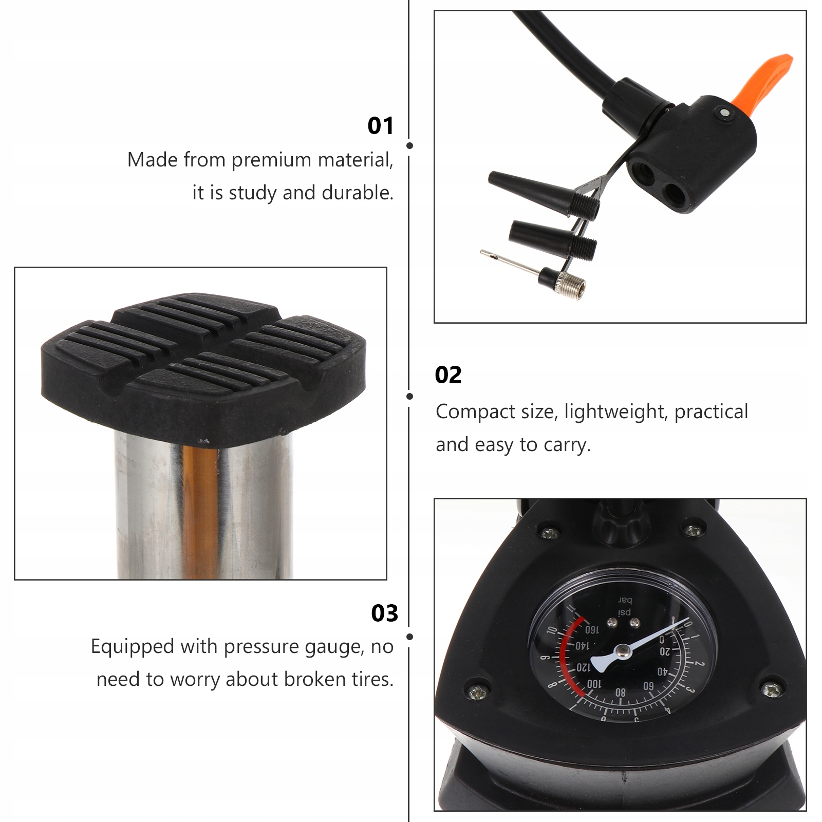 оснащений манометром, вам не потрібно турбуватися про зламані шини.