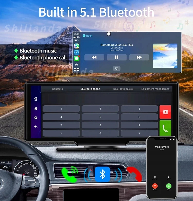 10,26" Android 12 Portable Carplay Android Auto 4 64g/2 32g Gps Wifi Bt Radio Fm Portable Screen Carplay