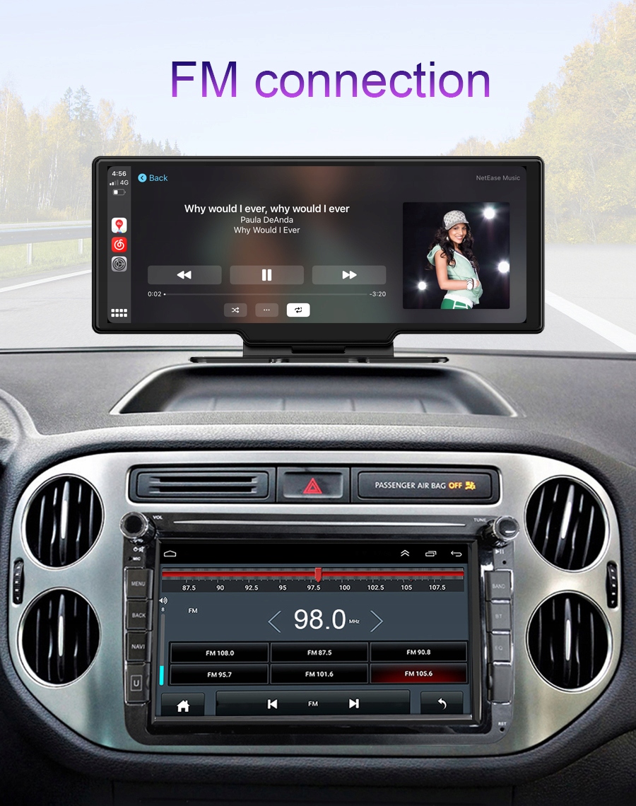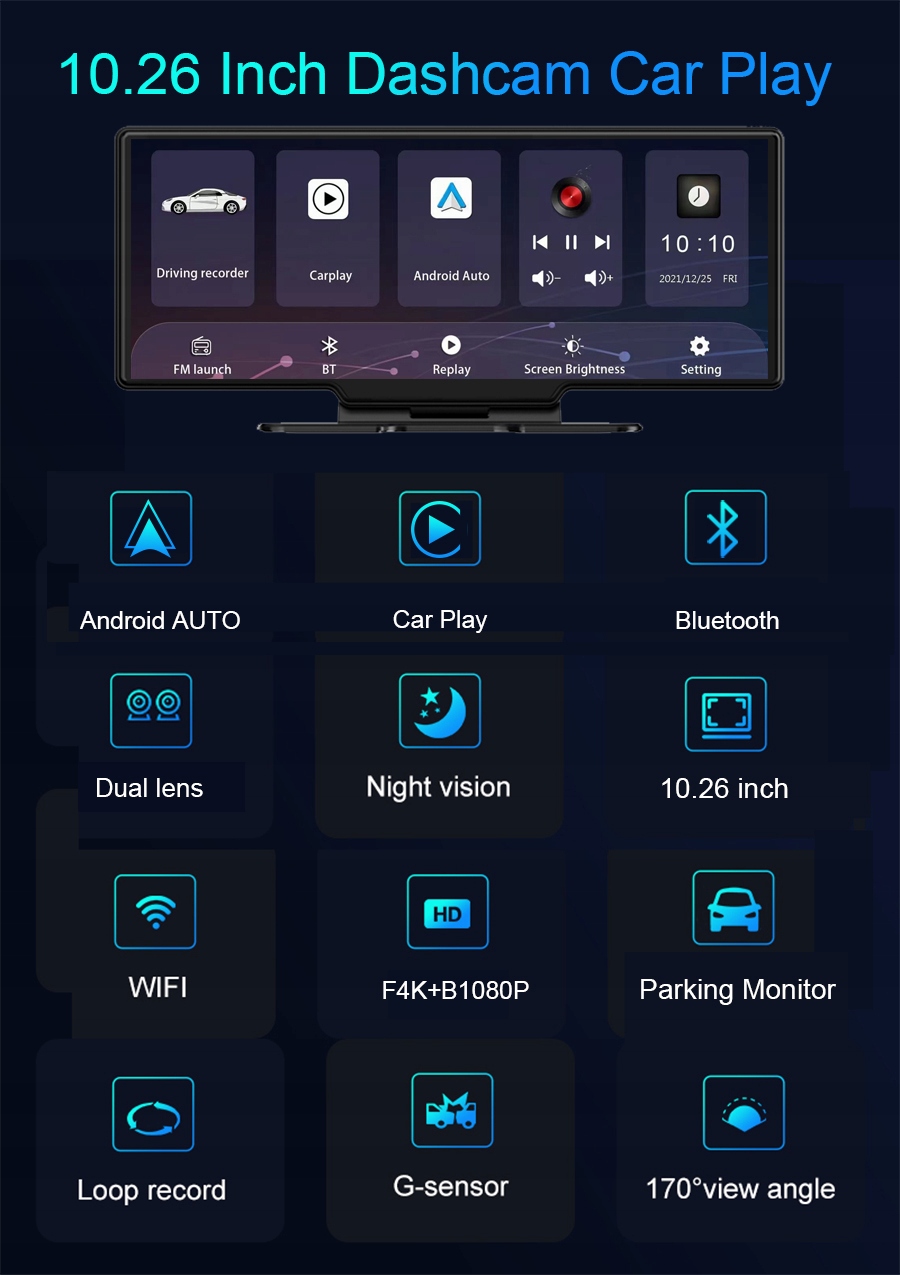 10,26-дюймовий HD Портативний Carplay Android auto Автомобільний відеореєстратор Приладова панель 4K 1080P Задня камера Мультимедійний відеореєстратор GPS-навігація WiFi