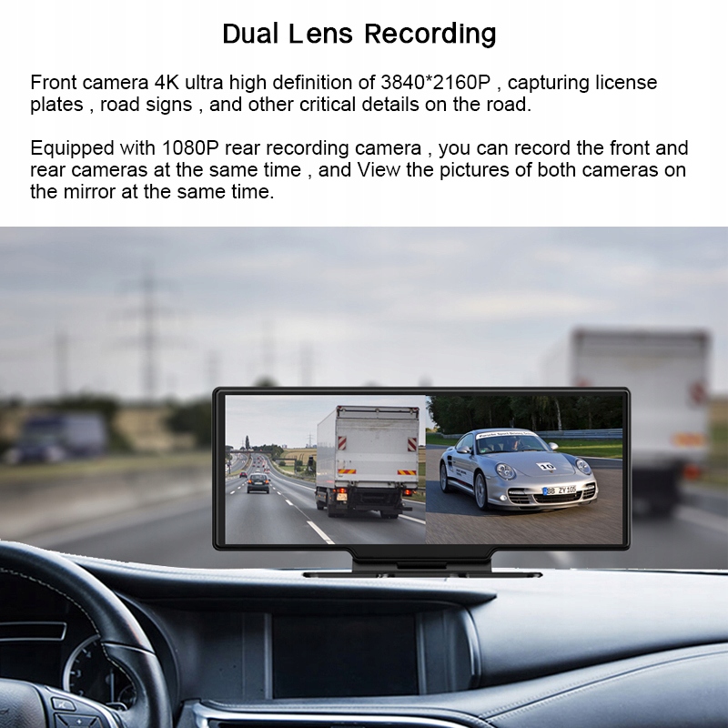 Оснащений задньою камерою запису 1080P, ви можете записувати передню та задню камери одночасно та відображати фотографії обох камер на дзеркалі одночасно