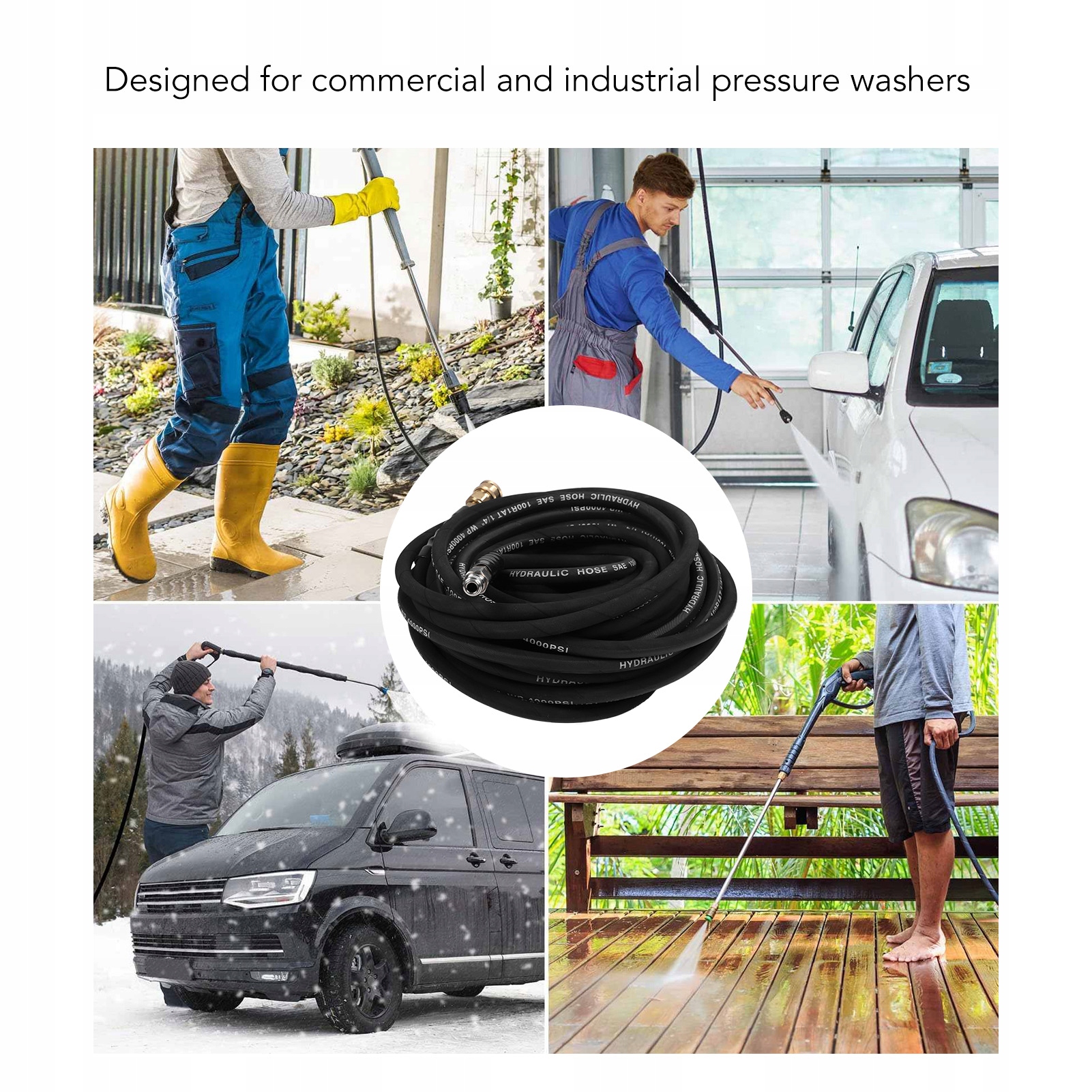 2. РОБОЧІ ДЕТАЛІ: Розроблений спеціально для домашнього прибирання та мийки високого тиску на малих підприємствах і в промисловості, максимальний робочий тиск шланга мийної машини високого тиску може досягати 4200 PSI. Витримує тиск розриву до 16 000 PSI. Найвища робоча температура 140 ℉/60 ℃. Швидкість потоку коливається від 2,5 GPM до 5 GPM. Він сумісний з більшістю марок газових або електричних мийних апаратів високого тиску, а також котушок або підставок для садових шлангів.