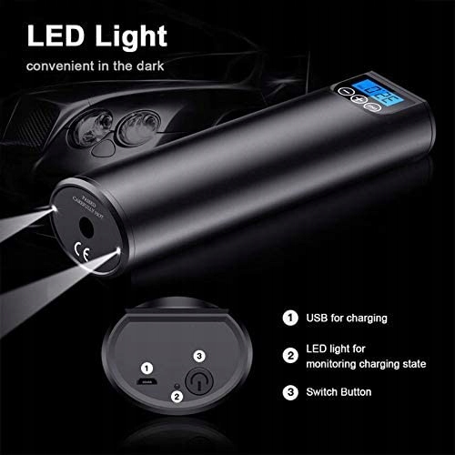 досить підключити його до електричної розетки автомобіля на 12 В і підключити до шини, яку ви хочете підірвати. Злегка натисніть перемикач і розпилювач повітря зробить всю роботу за вас коли PSI осідає необхідний поріг насос автоматично для запобігання надмірного надування яскравий світлодіодний світильник світлодіодний світильник високої яскравості для аварійної ситуації при надуванні. Зручне використання міні-спреїв повітря вночі або в темних місцях світло LED moe триває 7 годин область застосування Застосовується для автомобільних шин мотоциклів велосипедів, гумових покриттів на play надувних іграшок і т.д. використовується в якості powerbank міні циліндрична конструкція зі знімними корпусами на батарейках зручна гумова обробка на корпусі і дзеркальне виконання. Вбудований вихідний порт USB 5 V1 A для подачі живлення літієва батарея 2000 мАг для мобільного телефону або цифрового зв'язку післяпродажне обслуговування якщо у вас є які питання про нашу продукцію зв'яжіться з нами ми відповімо в cigu 24 години і дамо вам задоволення.е>