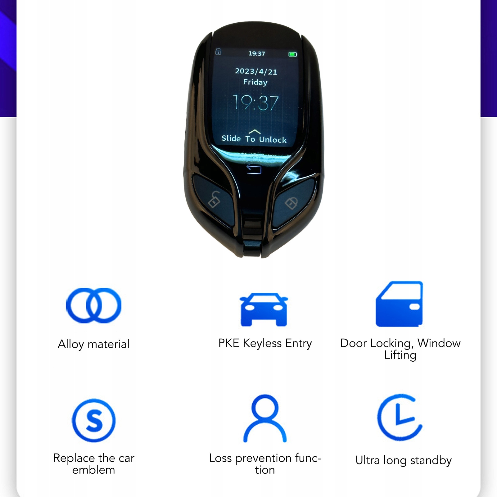 1. Розумний ключ: рамка зі сплаву цинку, гладка на дотик, міцний метал, висока міцність.