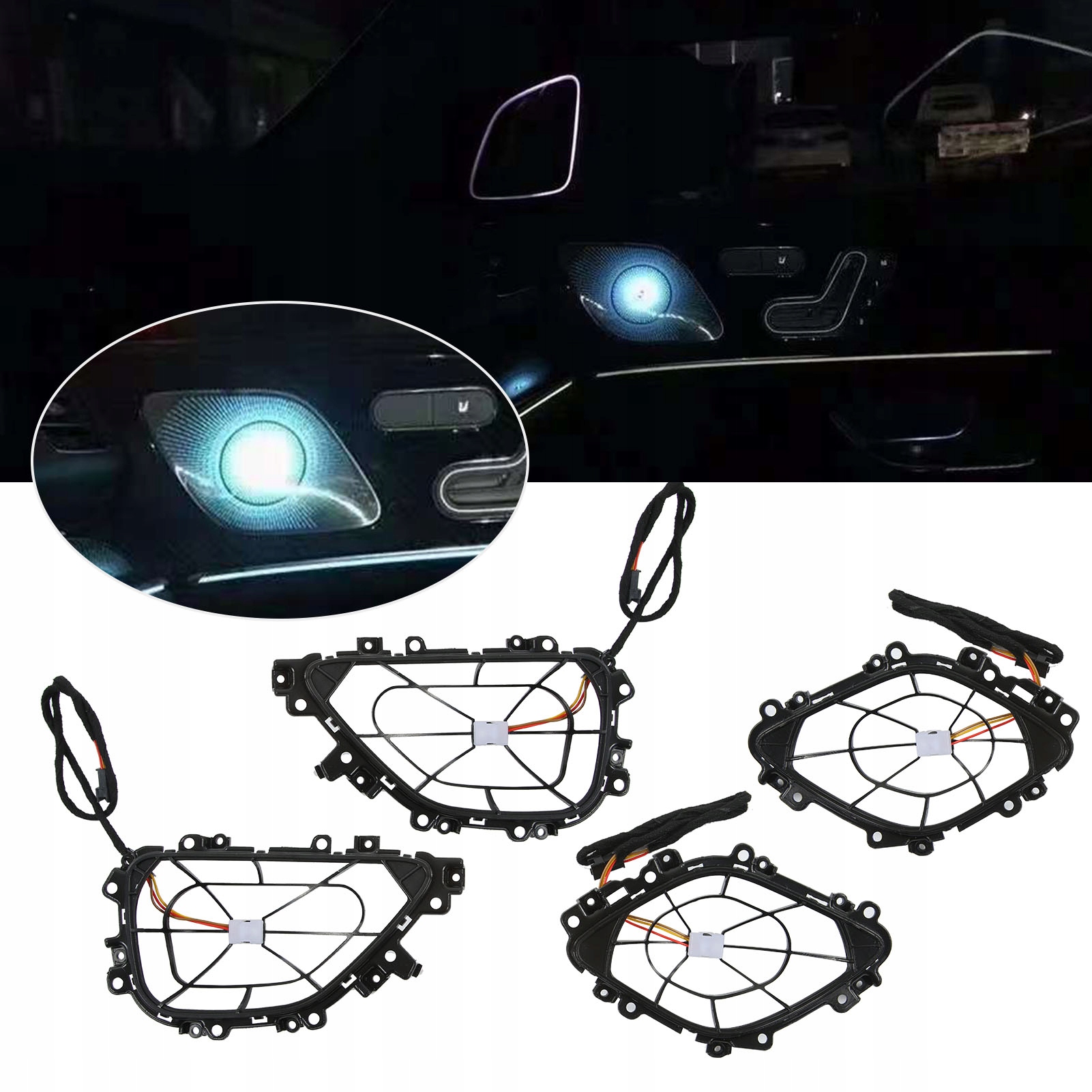 Функція:1. Ідеально підходить: світлодіодна накладка середньочастотного динаміка в дверях є заміною для Mercedes Benz GLE Class W167 2020 року випуску та заміною для Mercedes Benz GLS Class X167 2020 року.