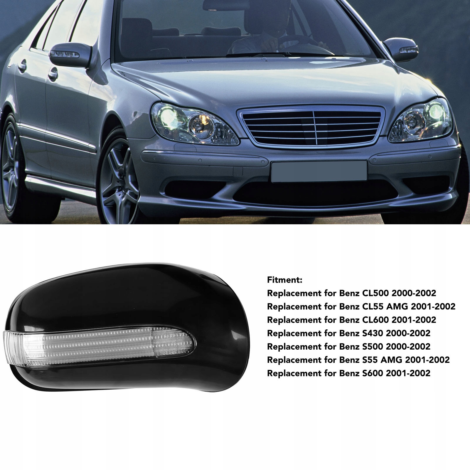 2. Застосування: кришка корпусу дзеркала заднього виду RH є заміною для Benz W220 W215 S320 S430 S55 AMG. Будь ласка, перевірте модель перед замовленням.