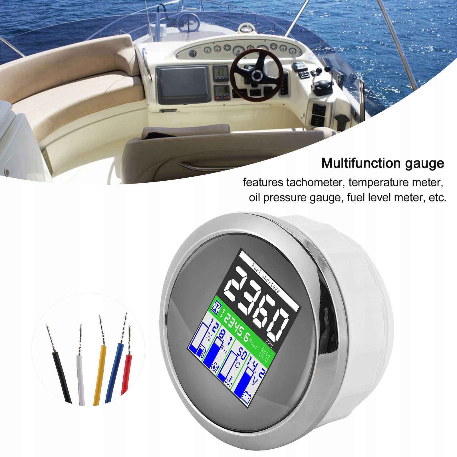 1. Багатофункціональний датчик включає тахометр, вимірювач температури, датчик тиску масла, вимірювач рівня палива і т.д.