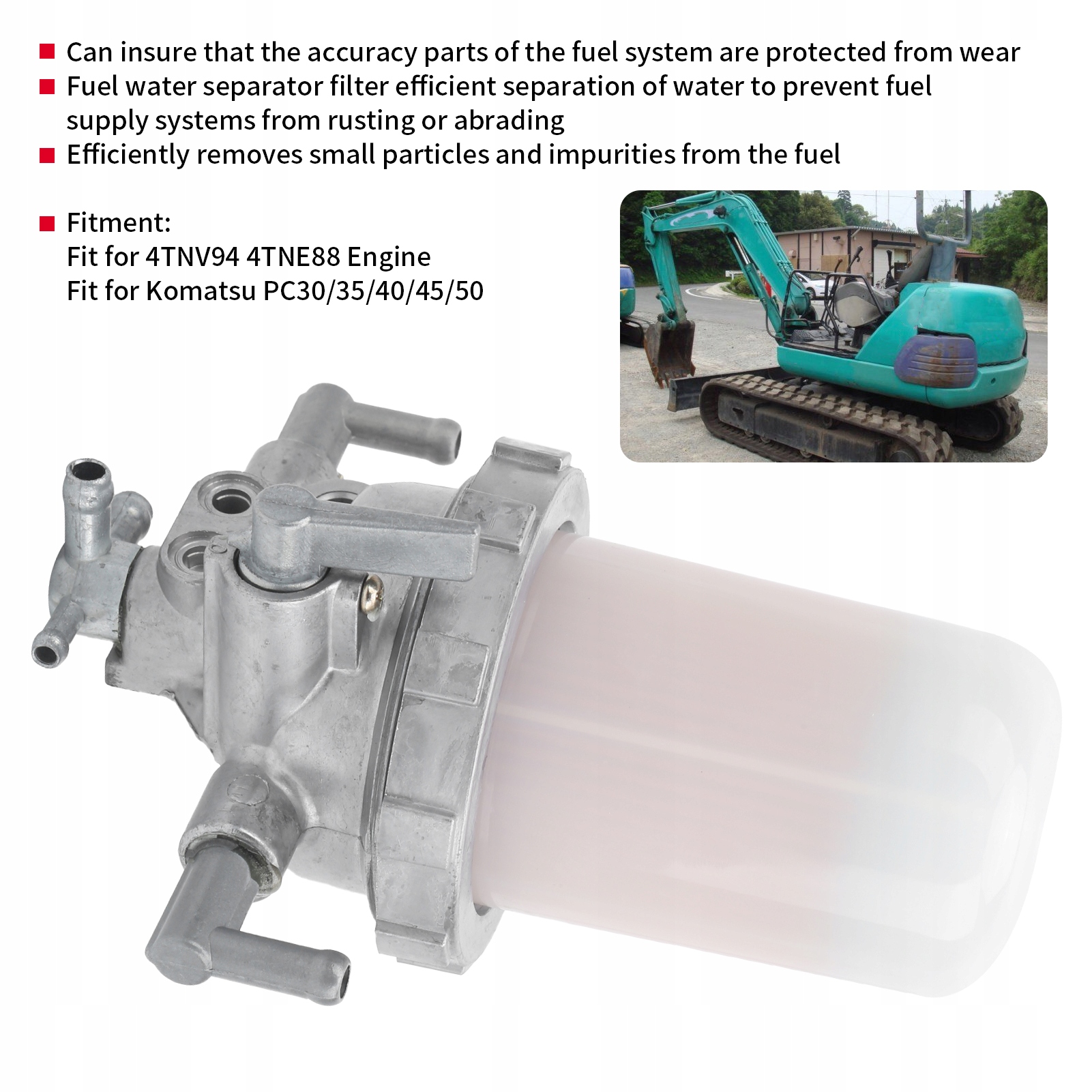 2. Фільтр сепаратора паливної води, спеціально розроблений для двигуна 4TNV94 4TNE88, підходить для Komatsu PC30/35/40/45/50.