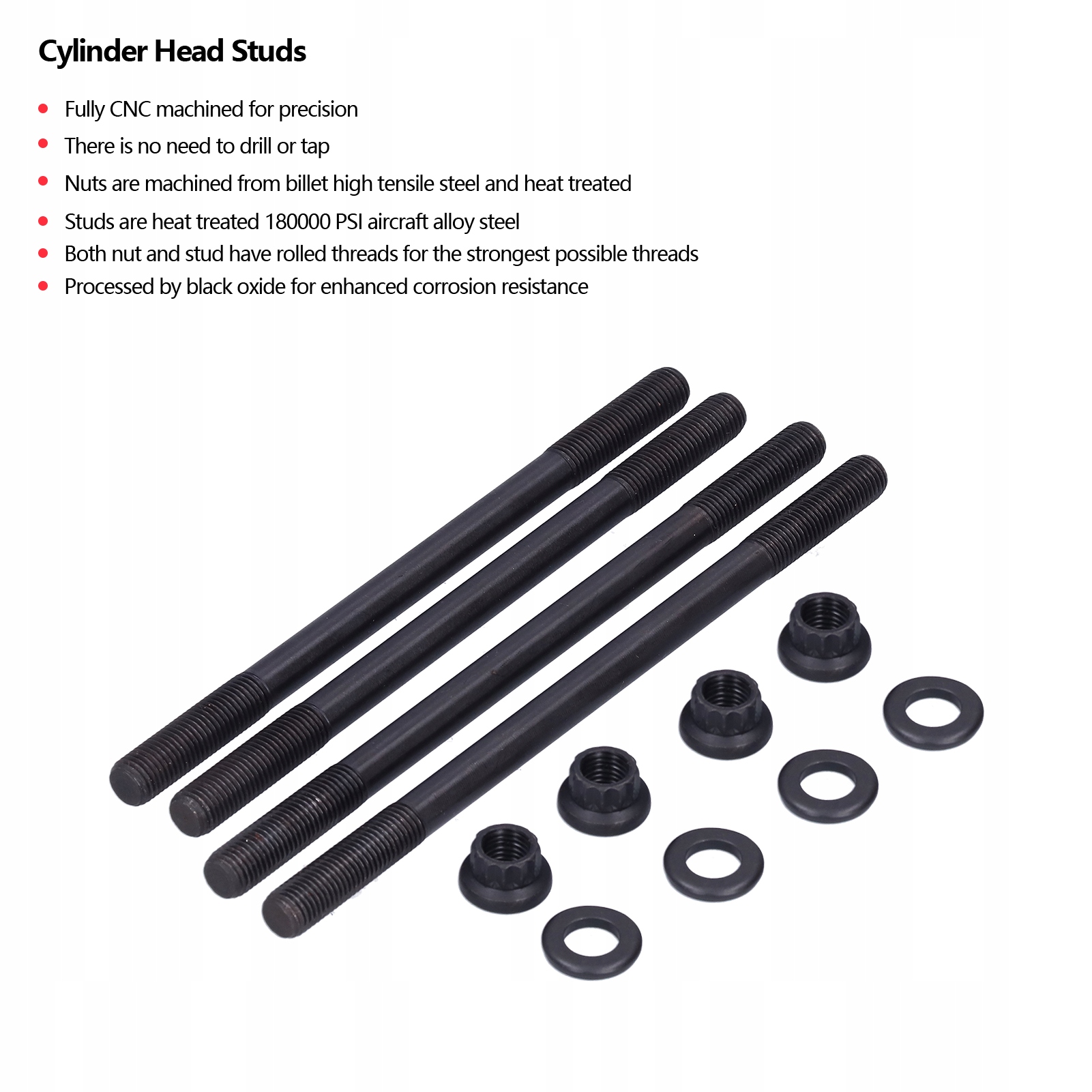 1. Болти головки блоку циліндрів повністю оброблені з ЧПК, щоб забезпечити точність, відсутність необхідності свердління або нарізування, що може ефективно заощадити ваш час.