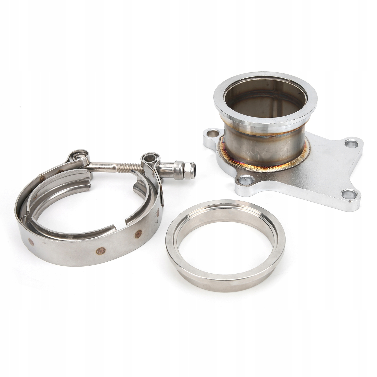 1. Цей фланцевий адаптер перетворює стандартну 5-болтову водостічну трубу корпусу турбіни в вихід V-образного типу діаметром 2,5 дюйма / 6,4 см.