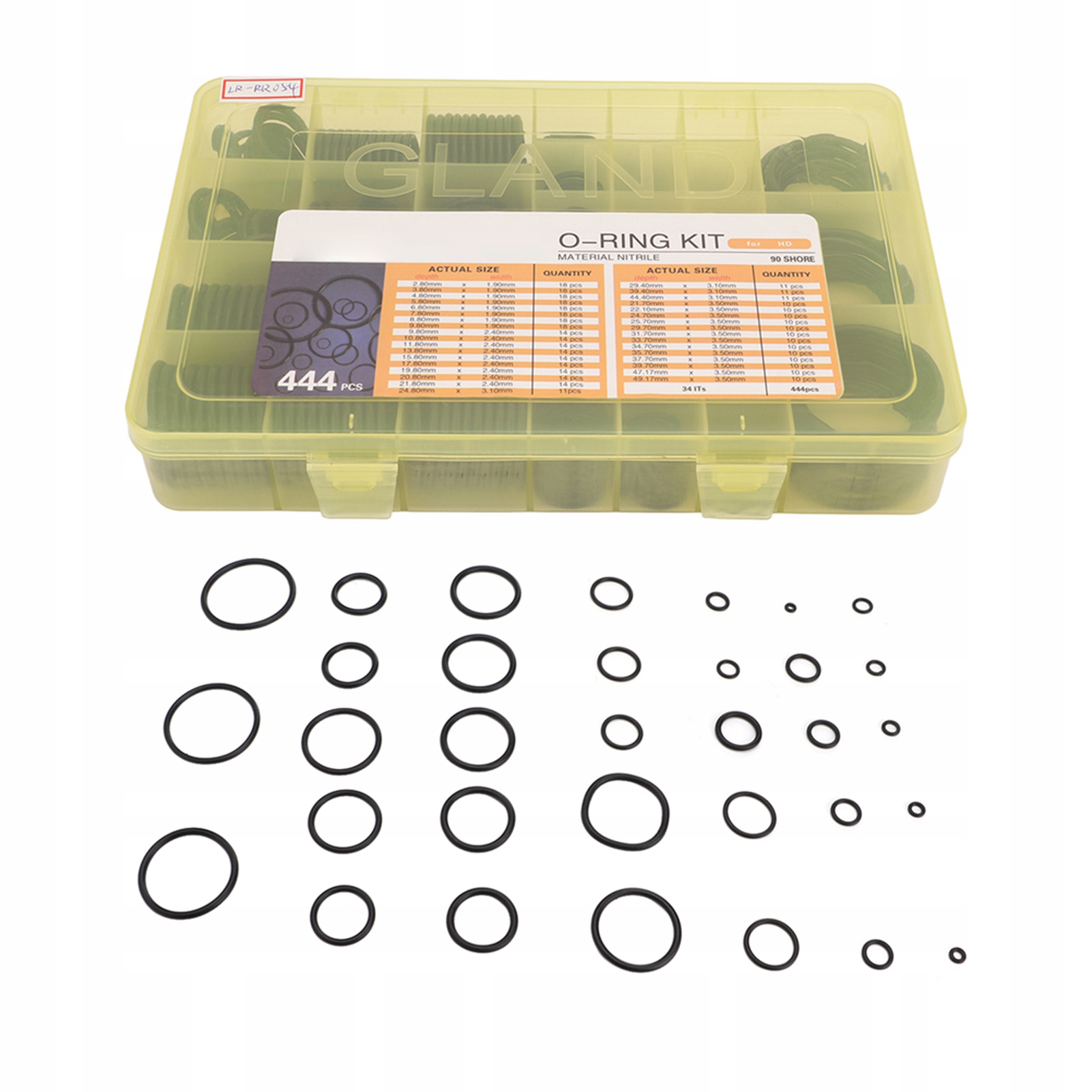 5. Коробка для зберігання: Всього 444 ущільнення, оснащені міцною коробкою для зберігання комплектів ущільнювальних кілець різних розмірів окремо і в порядку.е>
