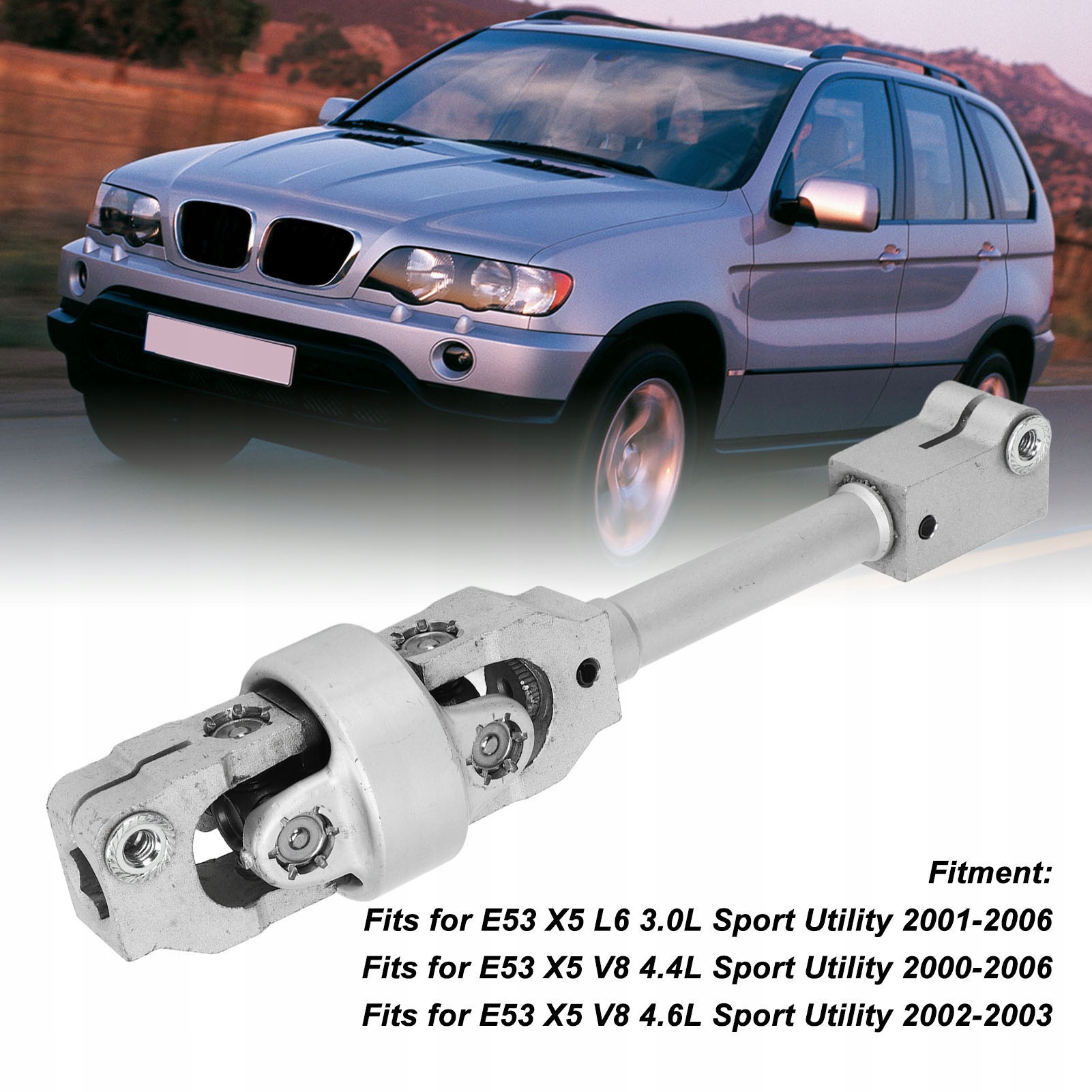 2. Встановлення: нижній карданний вал із подвійним рульовим управлінням є заміною для E53 X5 L6 3.0L Sport Utility 2001-2006, для E53 X5 V8 4.4L Sport Utility 2000-2006.