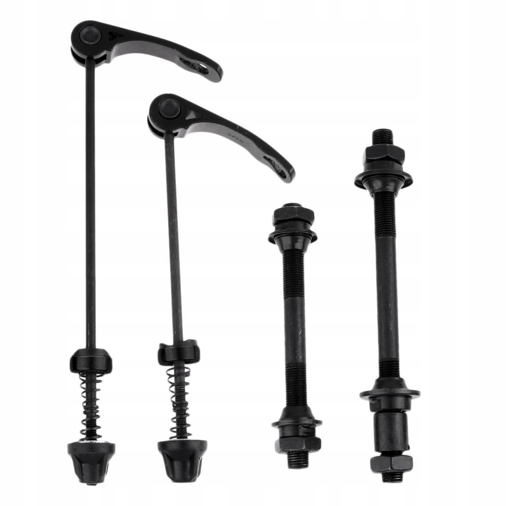 більш короткий набір важелів швидкого випуску валу і маточини для переднього колеса, більш довгий для заднього колеса