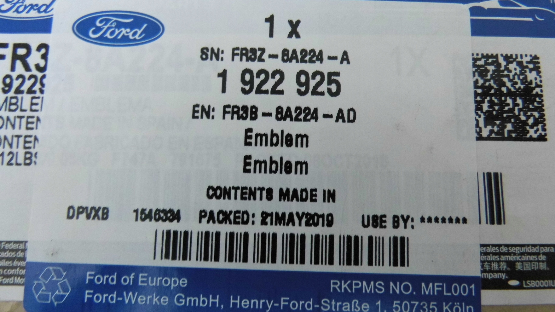 | Номер за каталогом | 1922925 |