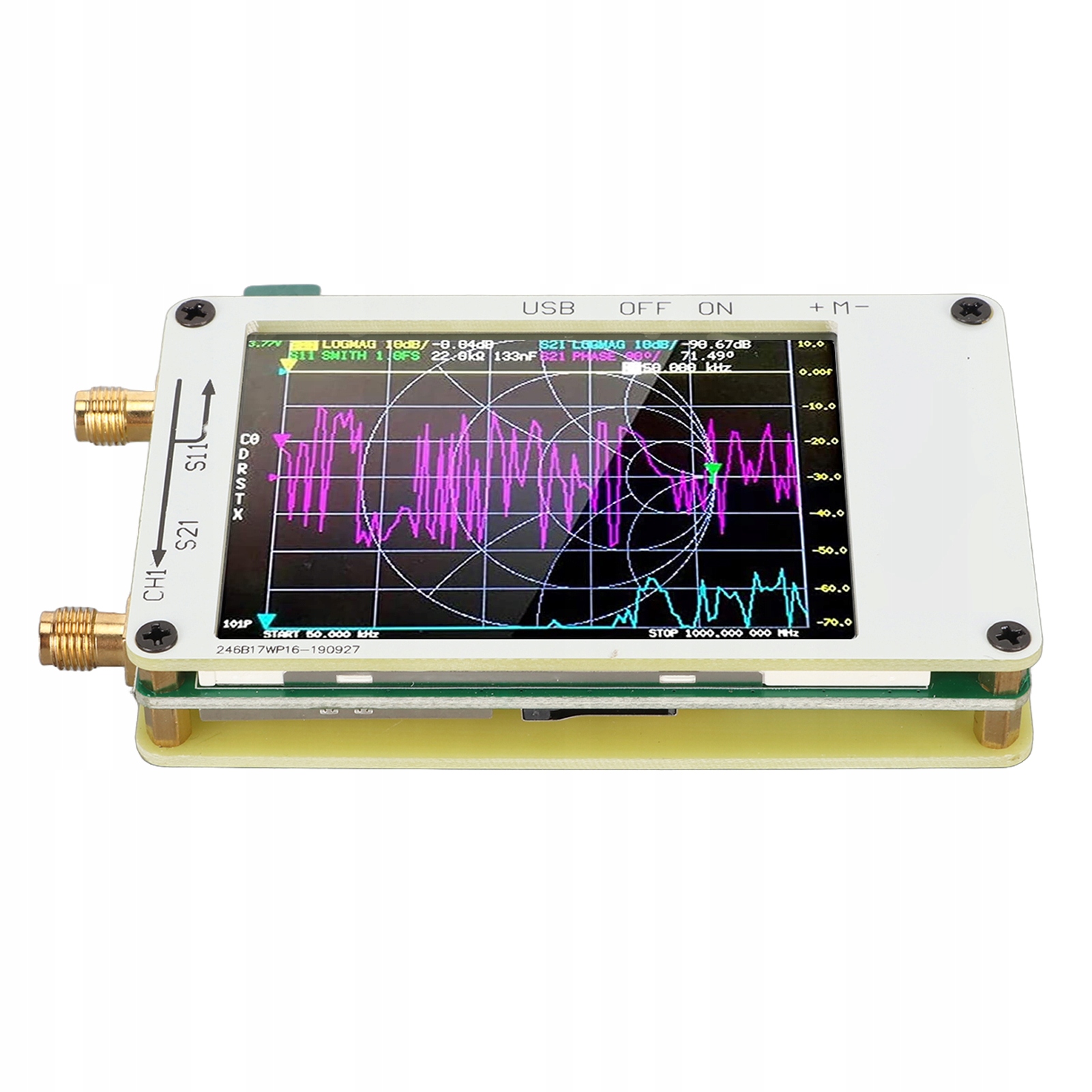 1. Сенсорний екран та акумулятор: векторний мережевий аналізатор відповідає оригінальному обладнанню, формі та функціям. Він оснащений 2,8-дюймовим сенсорним екраном і акумулятором ємністю 400 мАг, достатнім для 2 годин автономної роботи.