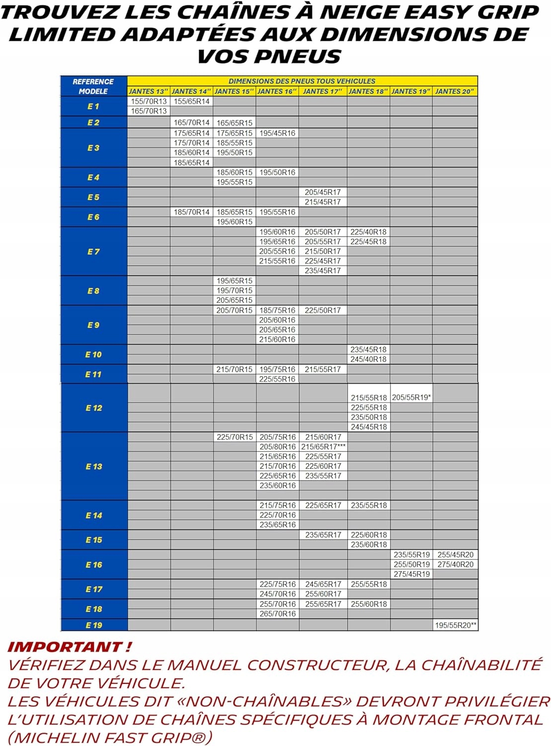 Модель: Композитні ланцюги протиковзання MICHELIN EASY GRIP Limited, міцні та швидкі для встановлення, E14