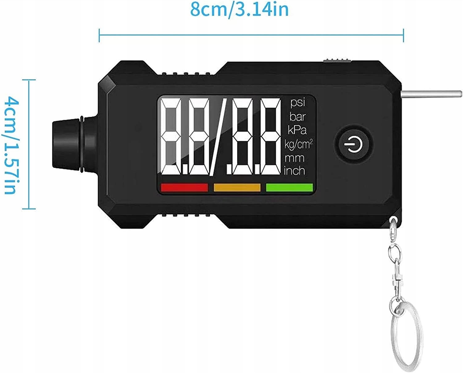 вимірює як тонкість в шинах 035680bar або 59 9psi і gboko bienika 016 мм.читання молі для заперечення. Esay для читання через РК-провітрювач автоматично для економії енергії пробник trway метал а не пластик. навіс кольору вказують на inn ситуації шин. Цей перемикач включає в себе затиск для ременя і ланцюжок ключів, а також контури конструкції для рукоятки 2 вставлених змінних кнопкових батарей.е>