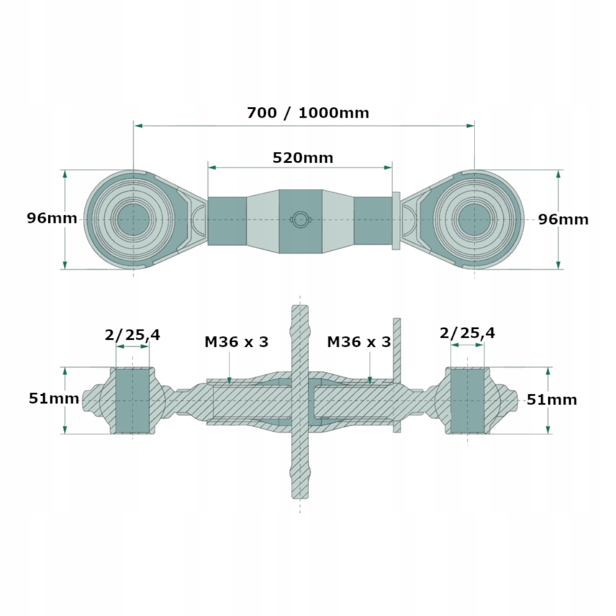 Верхня муфта 700 - 1000mm M36x3 Cat. 2-2