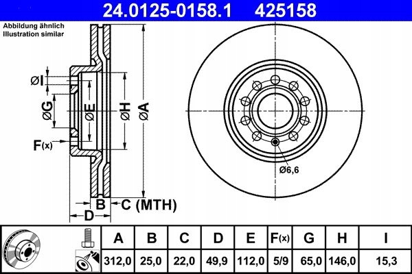 24.0125-0158.1 - Диски колодки ATE P + T-VW PASSAT B8 312 / 300mm