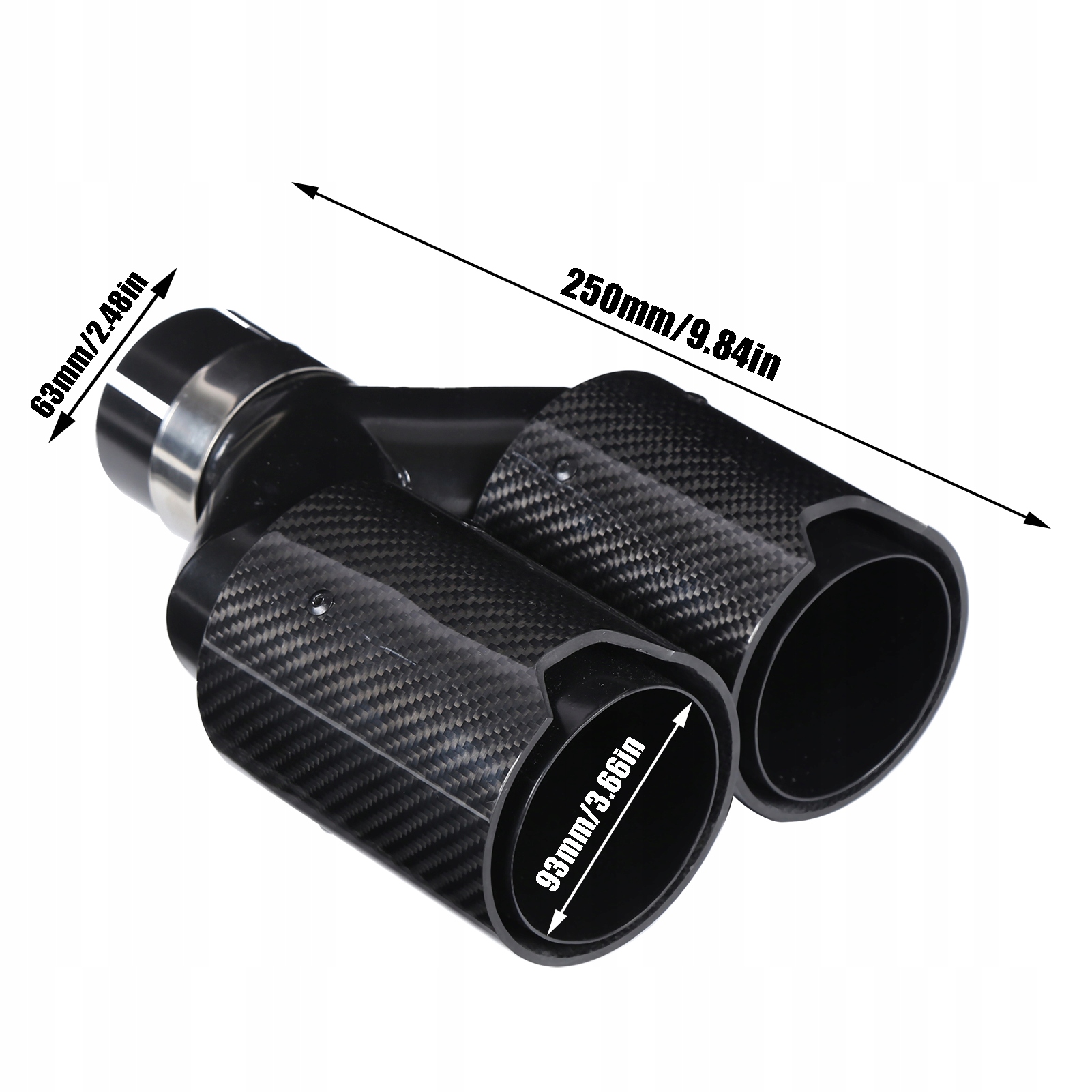 1. Універсальний для автомобілів (вихлопна труба 60 мм/2,36 дюйма встановлена на вхідному отворі 63 мм/2,48 дюйма).